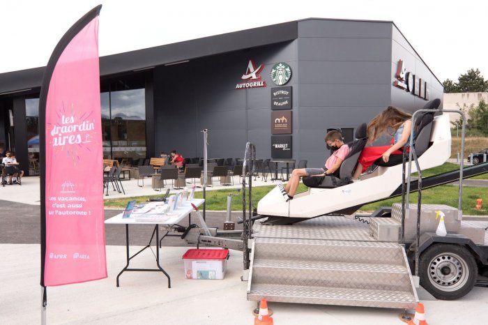 À l'heure des départs en vacances, la préfecture de la Côte-d'Or, la gendarmerie et APRR ont installé ce vendredi 9 juillet un village détente sur l'aire de Beaune-Tailly pour délivrer des messages de prévention et alerter sur l'hypovigilance.
