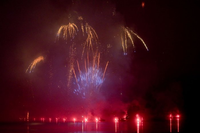 Le spectacle a été maintenu malgré la pluie ce mercredi 14 juillet. D'explosifs tableaux se sont déployés dans le ciel au-dessus du lac Kir pour évoquer la gastronomie et le vin.