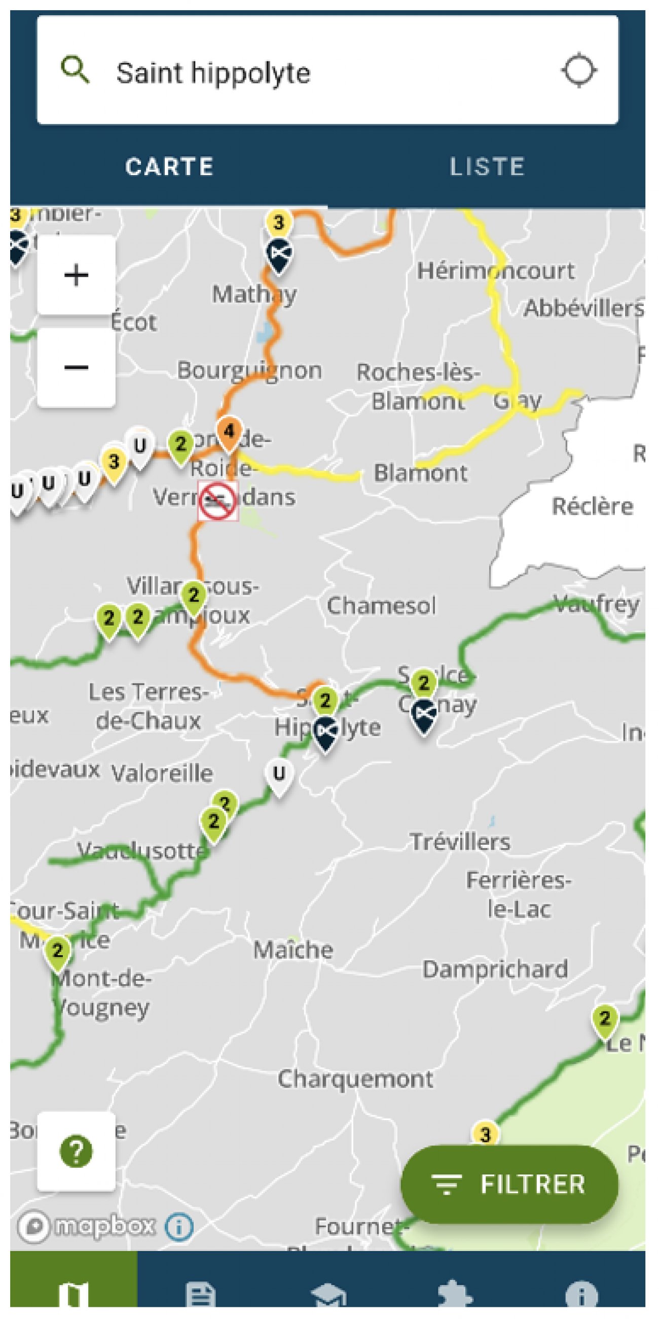 Grâce à l'application « Qualité Rivière », il est possible de connaître l’état de santé des cours d’eau, proches de chez soi ou sur l’ensemble du territoire Bourgogne-Franche-Comté. Depuis le bord de l’eau en activant la géolocalisation, ou en saisissant un code postal ou le nom d’une commune, une carte interactive s’affiche et indique, par un code couleur simple, le niveau de qualité de la rivière sélectionnée.
