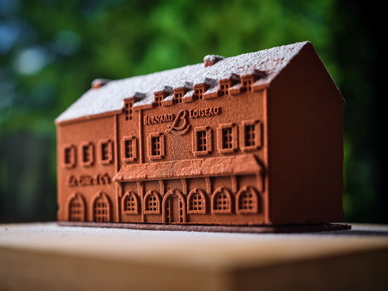 Représentant la façade emblématique du Relais Bernard Loiseau à Saulieu, cette bûche de Noël rend hommage aux 50 ans de l’arrivée de Bernard Loiseau à Saulieu.