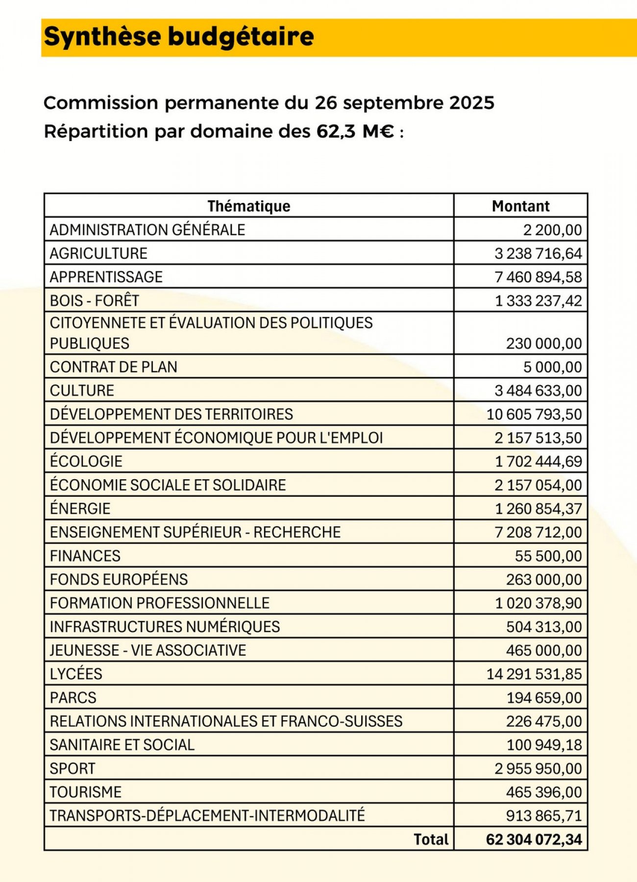 Communiqué du conseil régional de Bourgogne-Franche-Comté du 29 septembre 2025 :Réunis en commission permanente vendredi 26 septembre 2025 à Besançon, les élus ont voté 62,3 millions d’euros de financements régionaux.