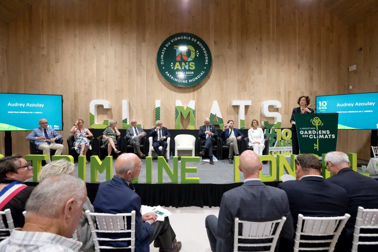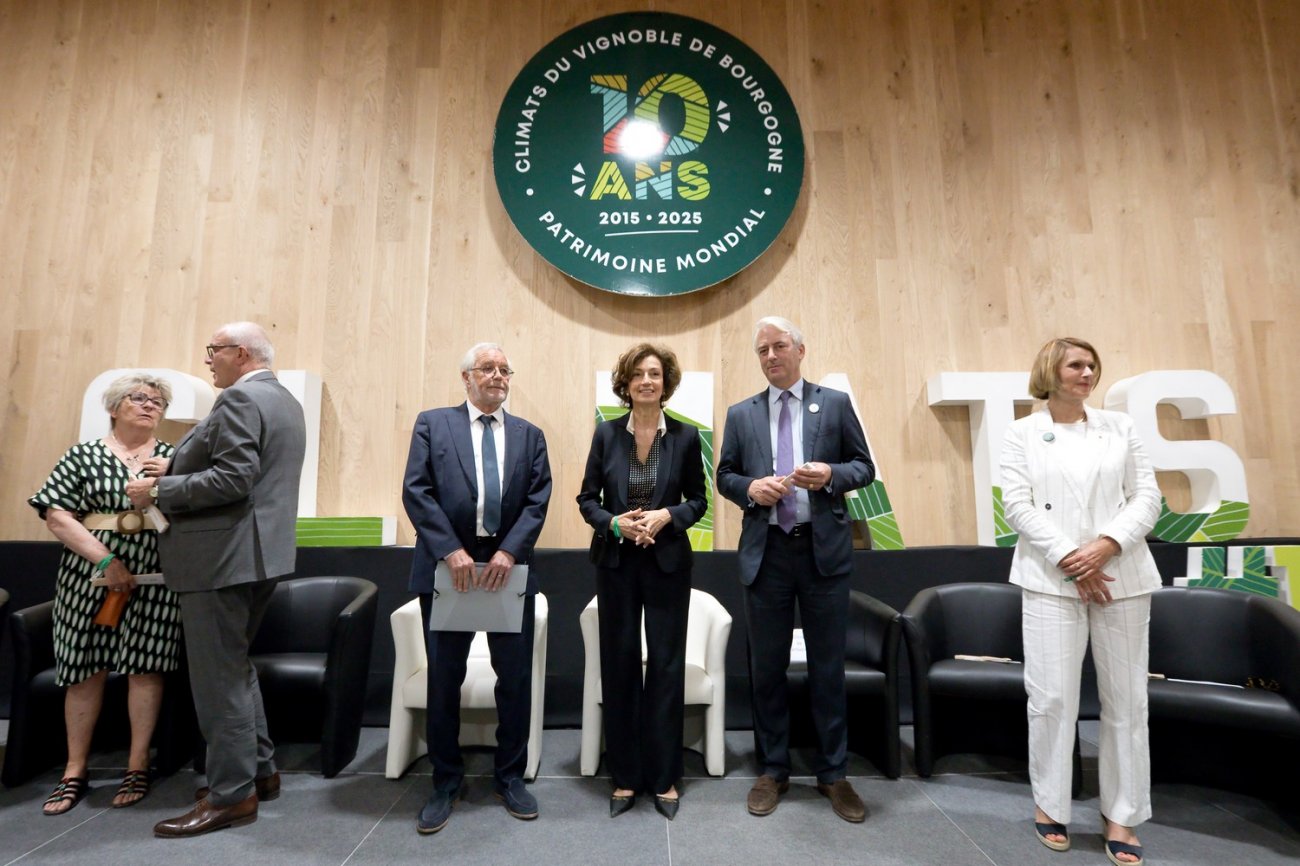 La directrice de l'UNESCO s'est exprimée lors du temps officiel de l'anniversaire des dix ans de l'inscription, ce vendredi 4 juillet, à Puligny-Montrachet, en présence de François Rebsamen. Selon Aubert de Villaine, les climats du vignoble de Bourgogne constituent «un modèle universel auquel se réfèrent toutes les viticultures de terroir du monde».