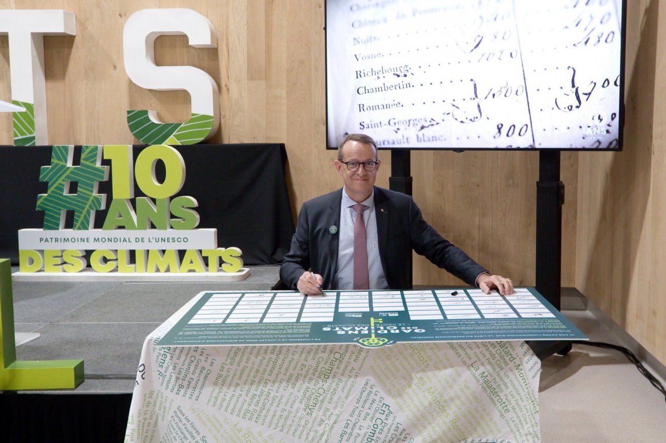 Le président du Comité Bourgogne évoque le défi du changement climatique qui fait qu'«aucun millésime ne ressemble à ses prédécesseurs» et conclut en souhaitant que les climats puissent «inspirer le monde entier».