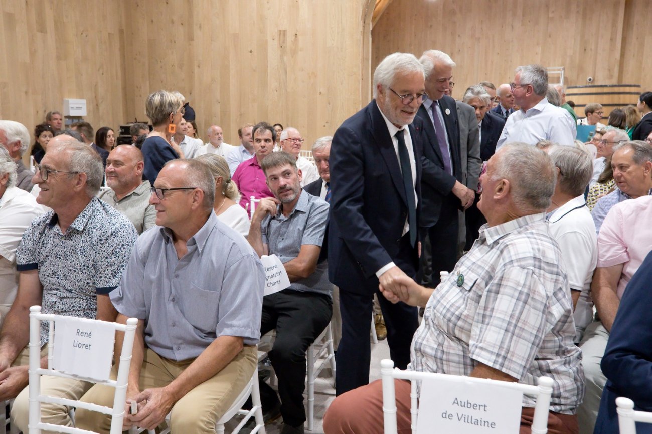 Lors du temps officiel à la cuverie du domaine Leflaive – un bâtiment neuf construit en bois et paille, revendiqué «zéro carbone» –, treize orateurs se sont succédé pour revenir sur les souvenirs en amont du dossier, se remémorer l'annonce de l'inscription, ovationner Aubert de Villaine et rappeler les actions engagées depuis.