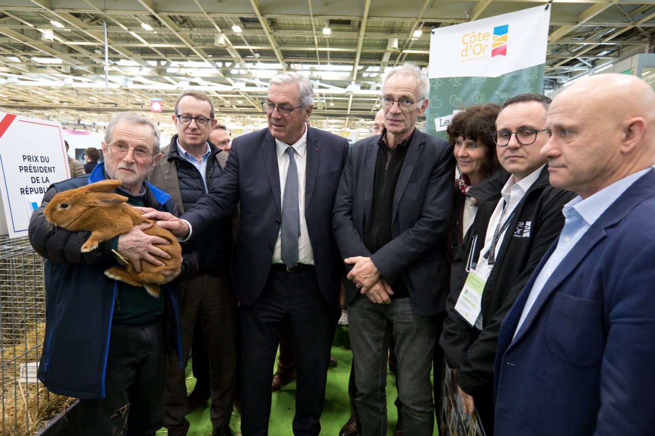 Après la pause méridienne, la délégation a rejoint la Ferme pédagogique du Salon pour féliciter Aimé Raulain qui a obtenu son huitième Prix du président de la République avec les félicitations du jury pour un Fauve de Bourgogne de 4,4 kg et noté 97/100.
