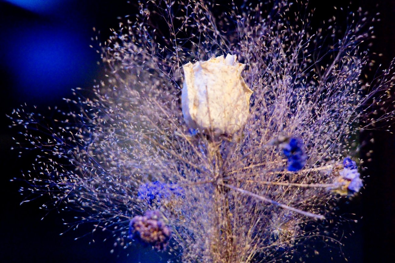 Puisque ce n'est pas la saison des roses, des roses séchées ornaient les tables, et Saé Haségawa, cheffe pâtissière du Château de Courban, avait conçu une grande rose en sucre.