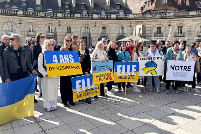 Tout juste quatre ans après l'invasion russe, un rassemblement était organisé, ce mardi 24 février, place de la Libération, en soutien au peuple ukrainien. Environ 200 personnes y ont participé. «L’Ukraine est le bouclier des pays européens», a déclaré une militante associative.