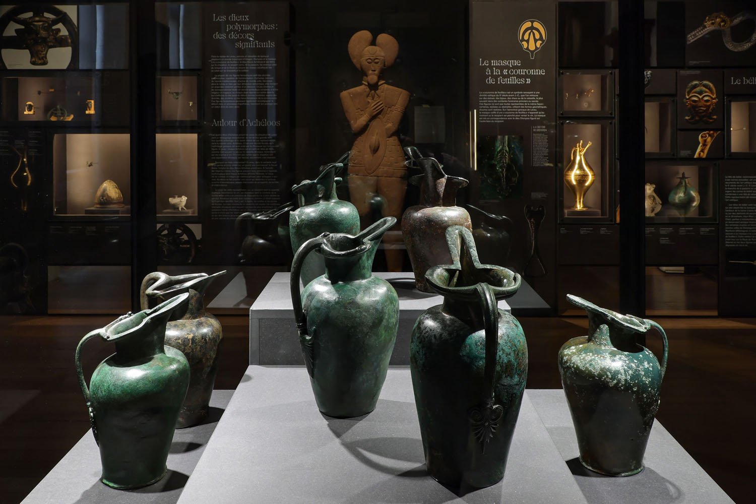 L’exposition présente pour la première fois au public la totalité du mobilier issu des fouilles. Ces objets finement restaurés sont mis en regard d’autres ensembles contemporains régionaux et internationaux. Les commissaires ont privilégié des objets récemment découverts et des comparaisons de séries issues de prêteurs français et européens : œnochoés grecques et étrusques, statues, bijoux…
