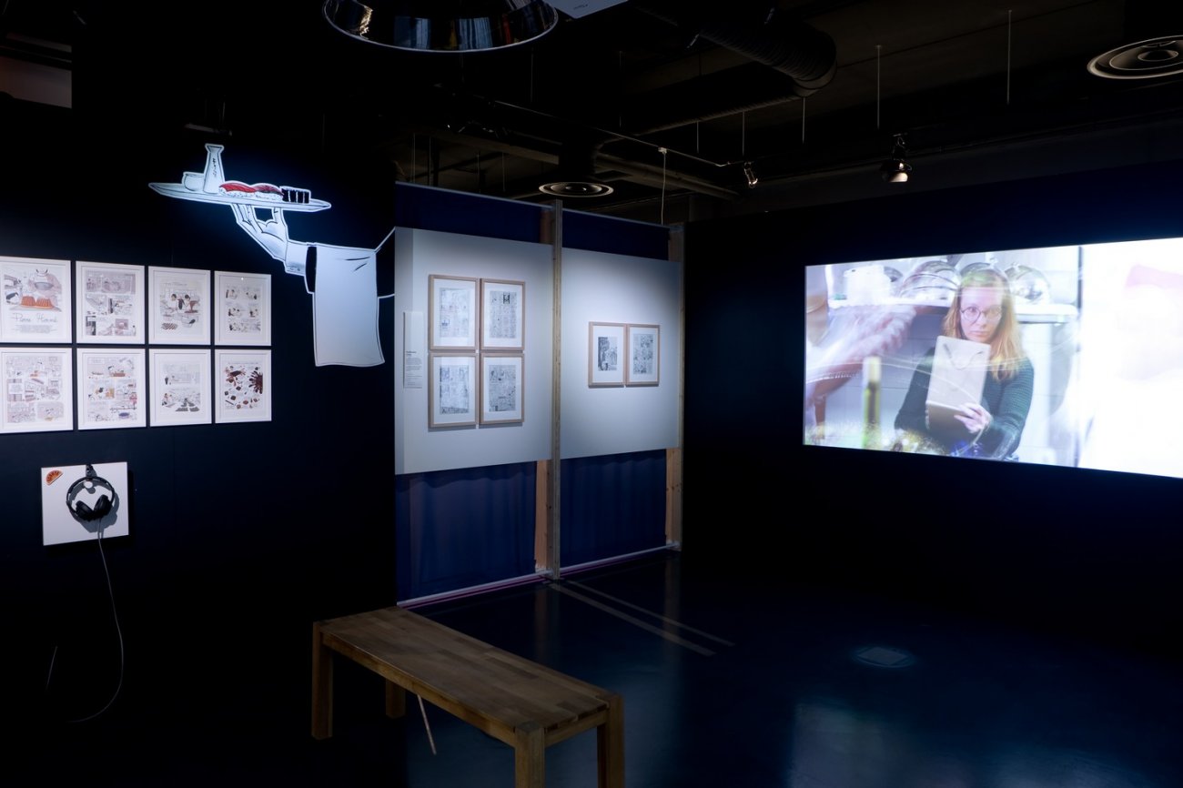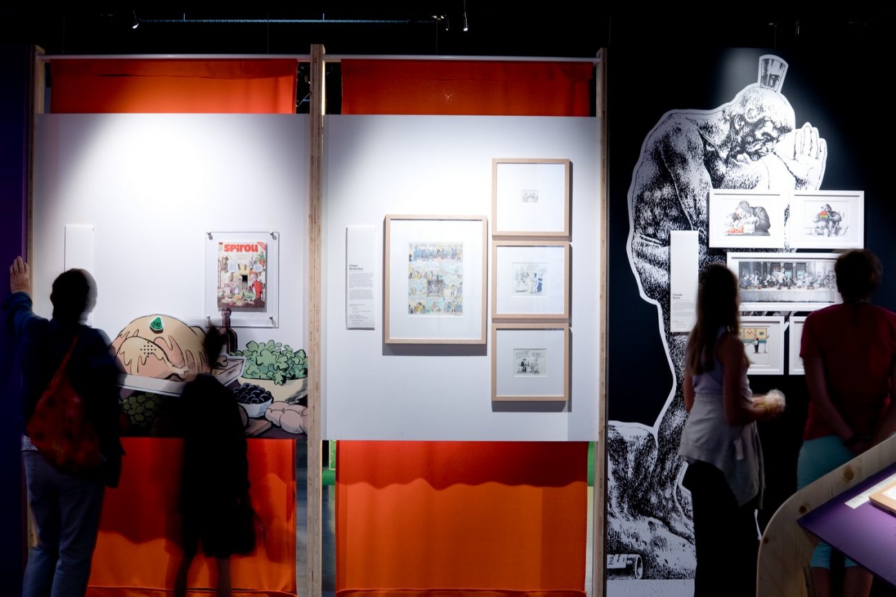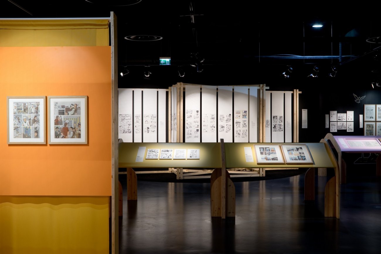 La production contemporaine de bandes dessinées permet aux commissaires de l'exposition d'envisager plusieurs modalités d'accrochage, ce qui rythme l'exposition.
