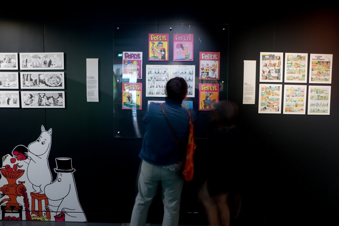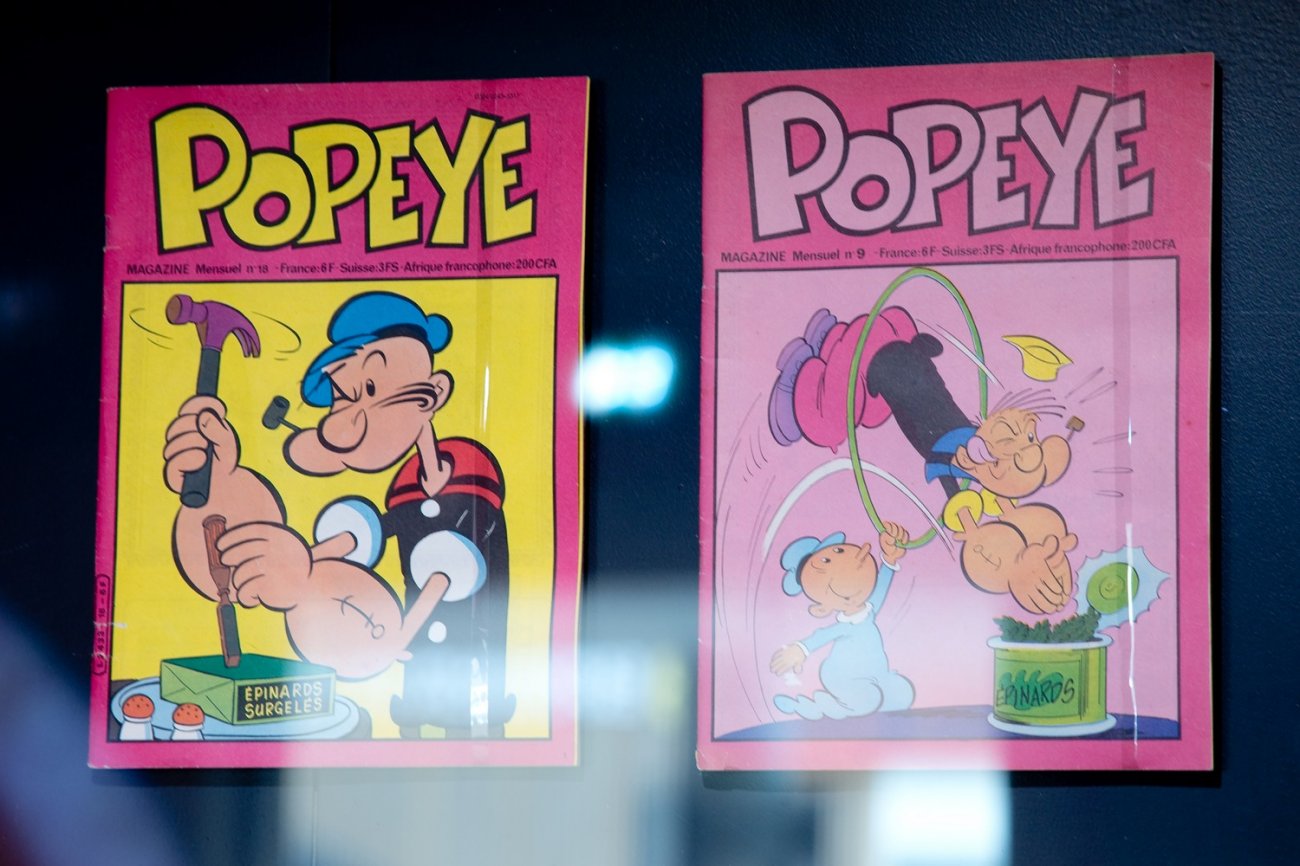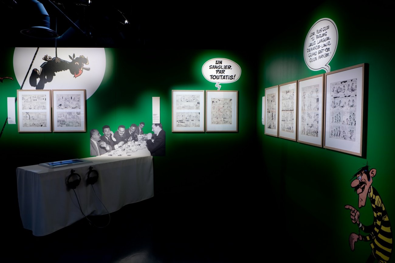 La première salle met en avant des personnages emblématiques de bande dessinée fortement associés à l'alimentation : Astérix et Obélix et leurs fameux sangliers, Popeye et ses épinards, Gaston Lagaffe et ses expériences culinaires.