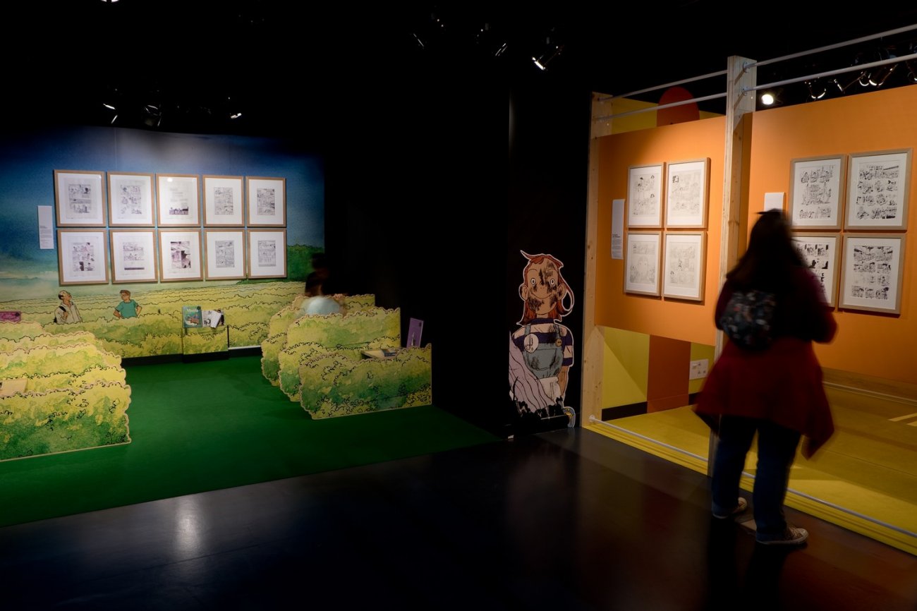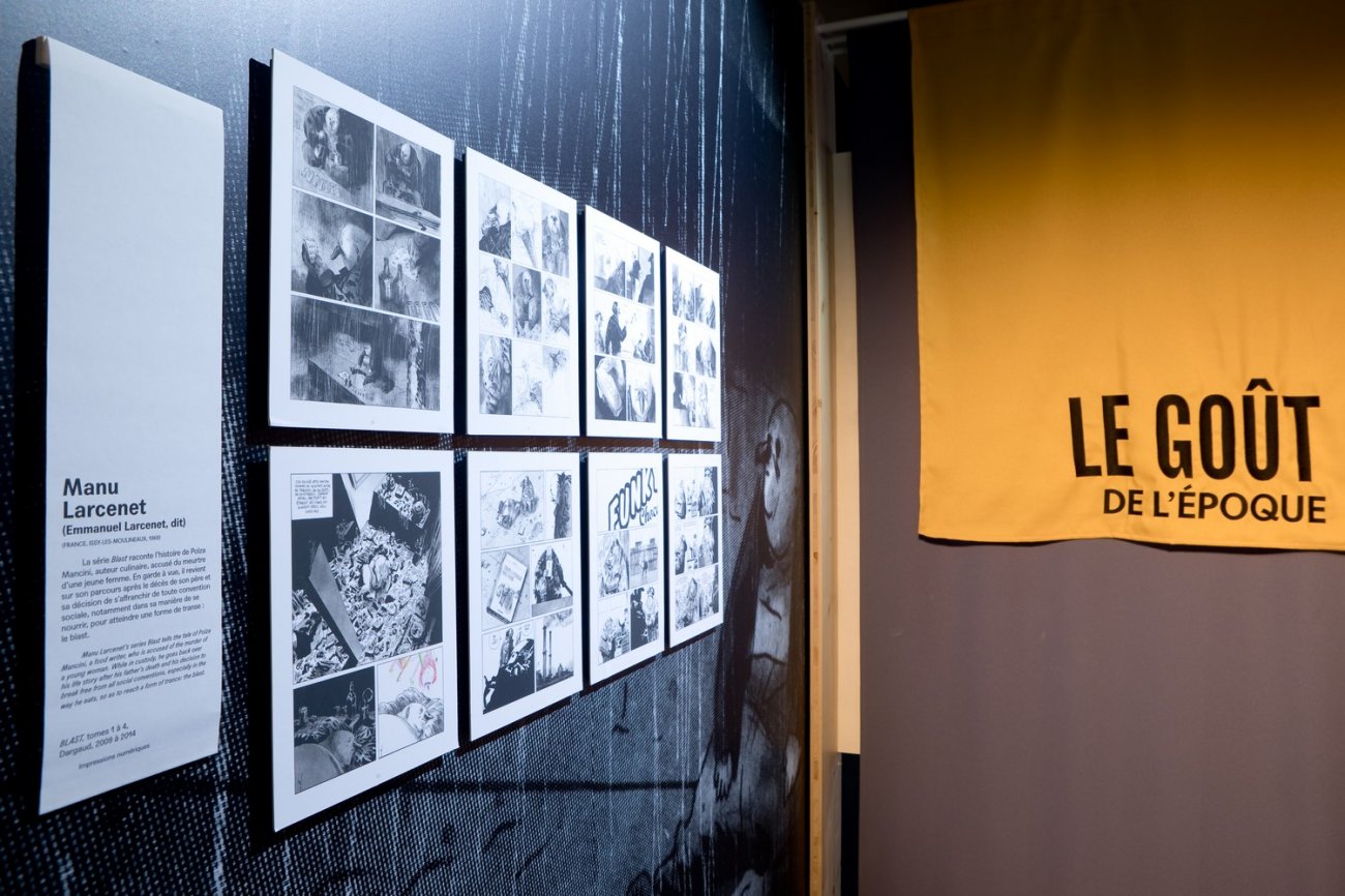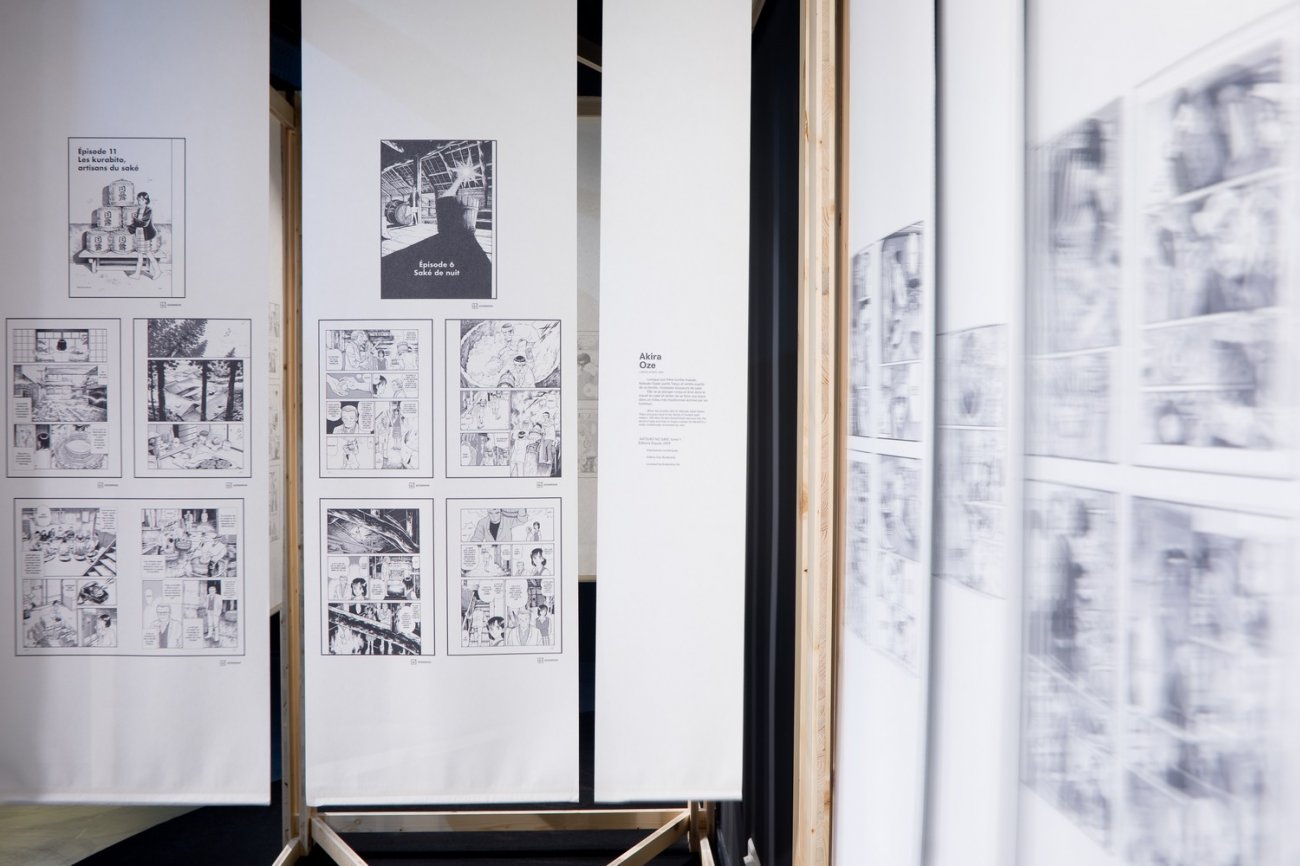 Le visiteur passe ainsi de la planche apposée au mur, à la page de roman graphique présentée encadrée et même jusqu'aux mangas affichés en kakemonos flottant dans l'air.