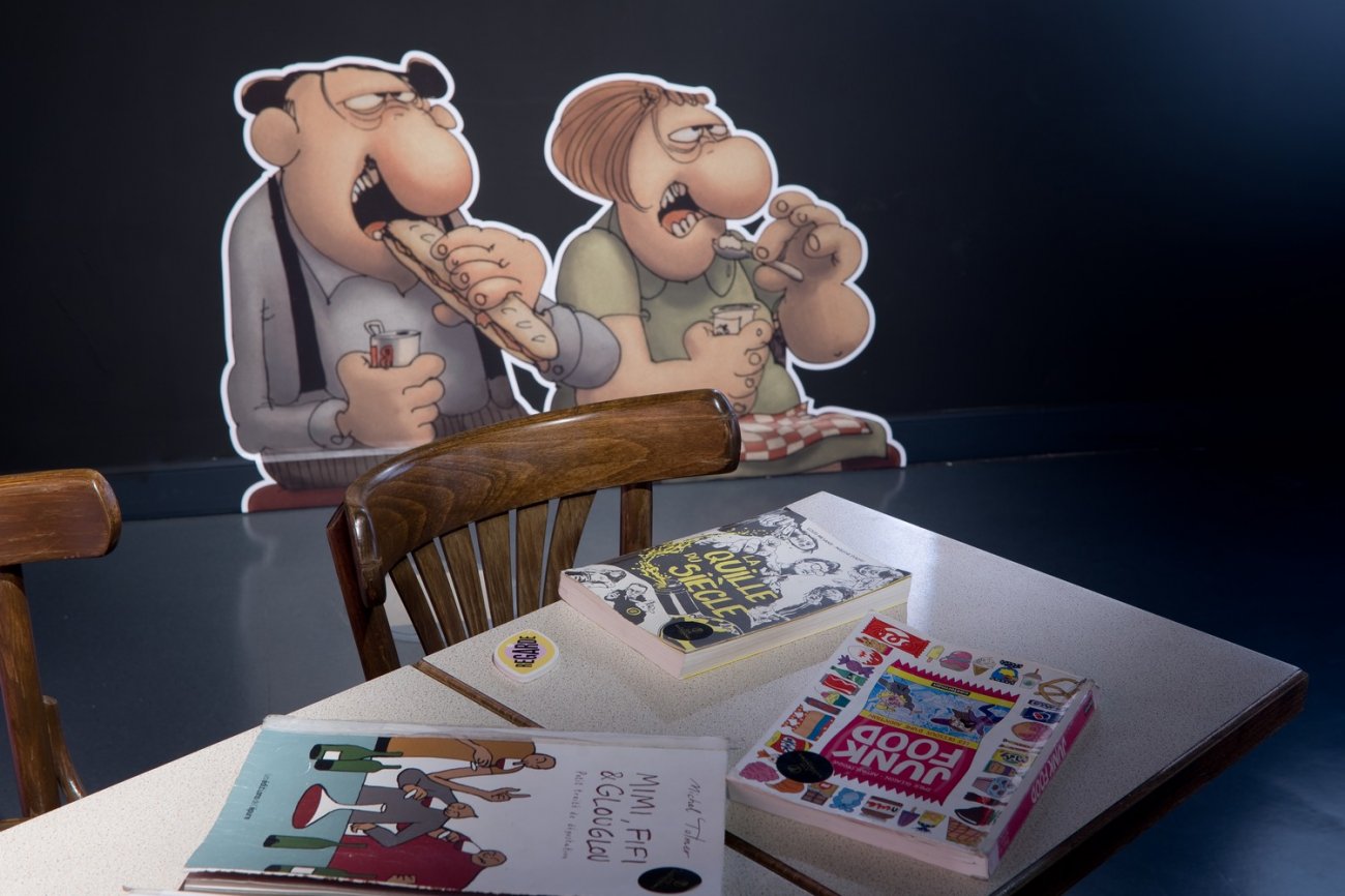 Et de faire le parallèle avec l'exposition permanente «Le Petit Théâtre du bien-boire et du bien-manger» : «la première partie explique cette inscription à l'UNESCO puis on a de petits comics qui se moquent du rapport, parfois snob, qu'ont les Français avec leur repas».