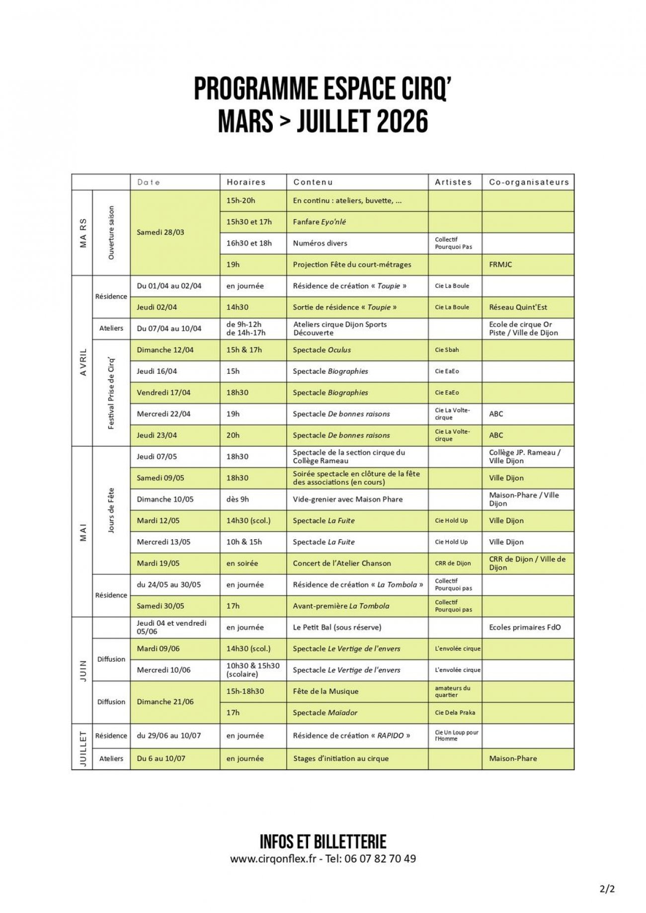 La saison sera rythmée par plusieurs temps forts : le festival Prise de Cirq’, Jours de Fête à Fontaine d’Ouche en collaboration avec la ville de Dijon, la Fête de la Musique et d’autres encore.