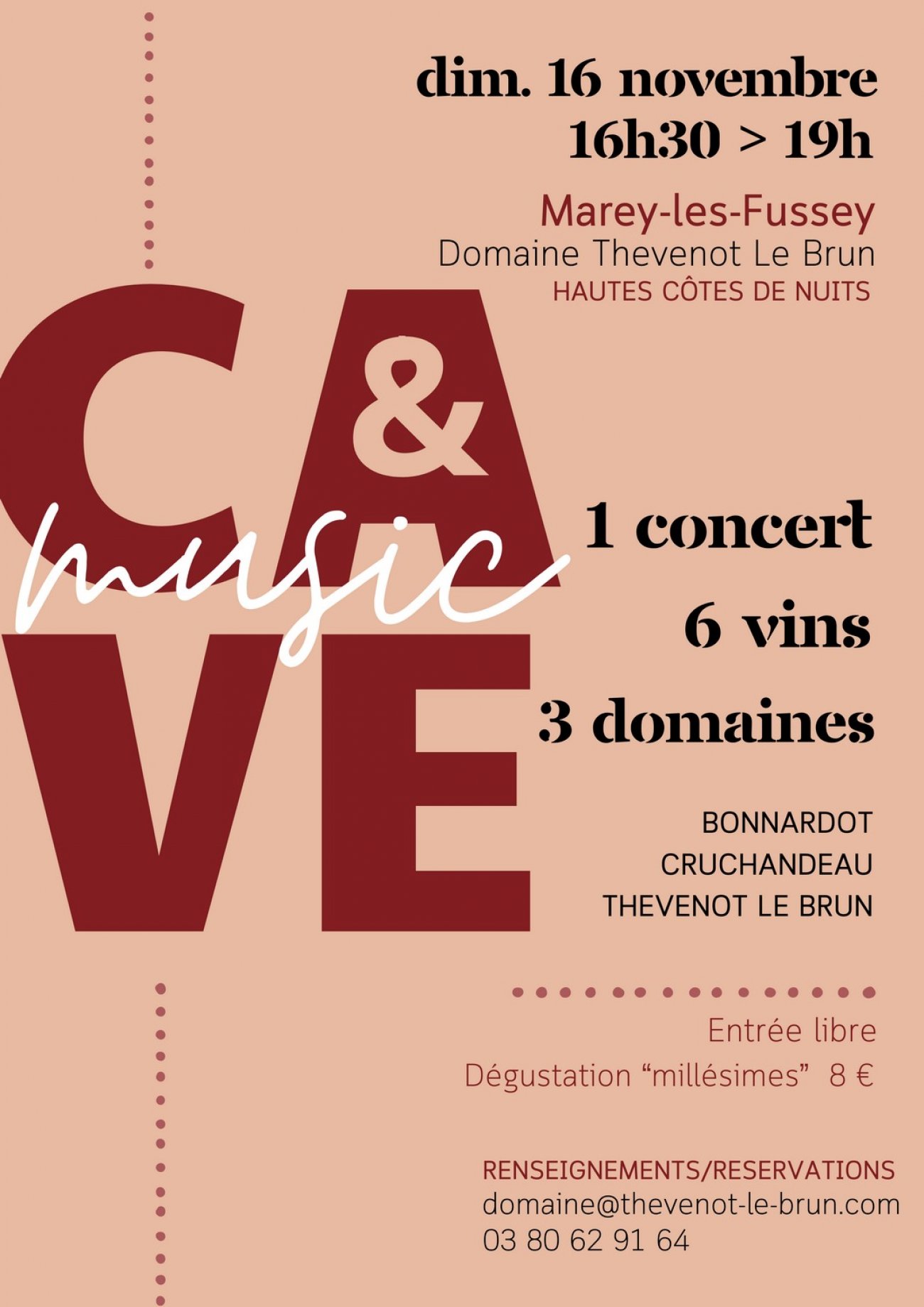 Deuxième édition pour ce rendez-vous du week-end de la Vente des vins : « Cave & Music », un concert-dégustation avec 3 domaines des Hautes-Côtes de Nuits : domaine Bonnardot, Cruchandeau et Thevenot-le-Brun.