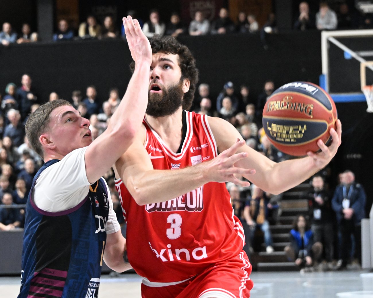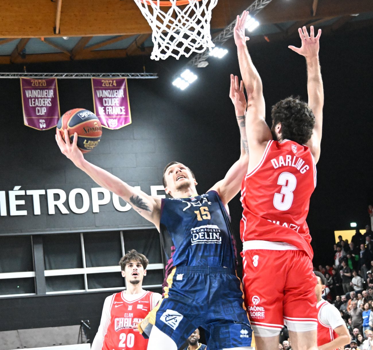 En attaque, les locaux proposent un basket offensif parfaitement huilé où le ballon circule pour trouver les shooteurs ouverts. Robin Ducoté se régale du mouvement de balle pour enchaîner les gros tirs et faire grimper progressivement l’écart en faveur de son club formateur (61-47). Les hommes de Legname sont en maîtrise totale mais les Chalonnais sont très loin d’avoir dit leur dernier mot. Les visiteurs peuvent toujours compter sur leur sérial scorer Nate Darling pour enchaîner les paniers et permettre à l’Élan de limiter la casse et de revenir progressivement dans le coup. À dix minutes du terme, les joueurs de la cité des Ducs prennent un léger avantage (70-64).