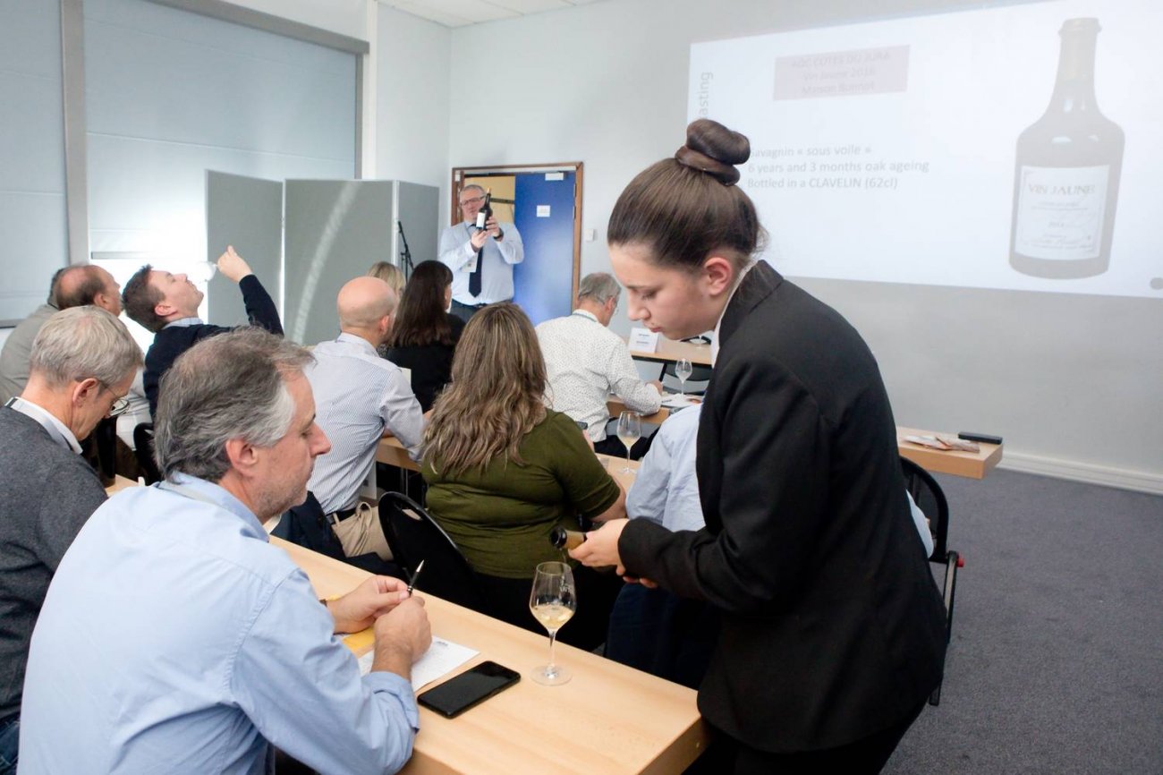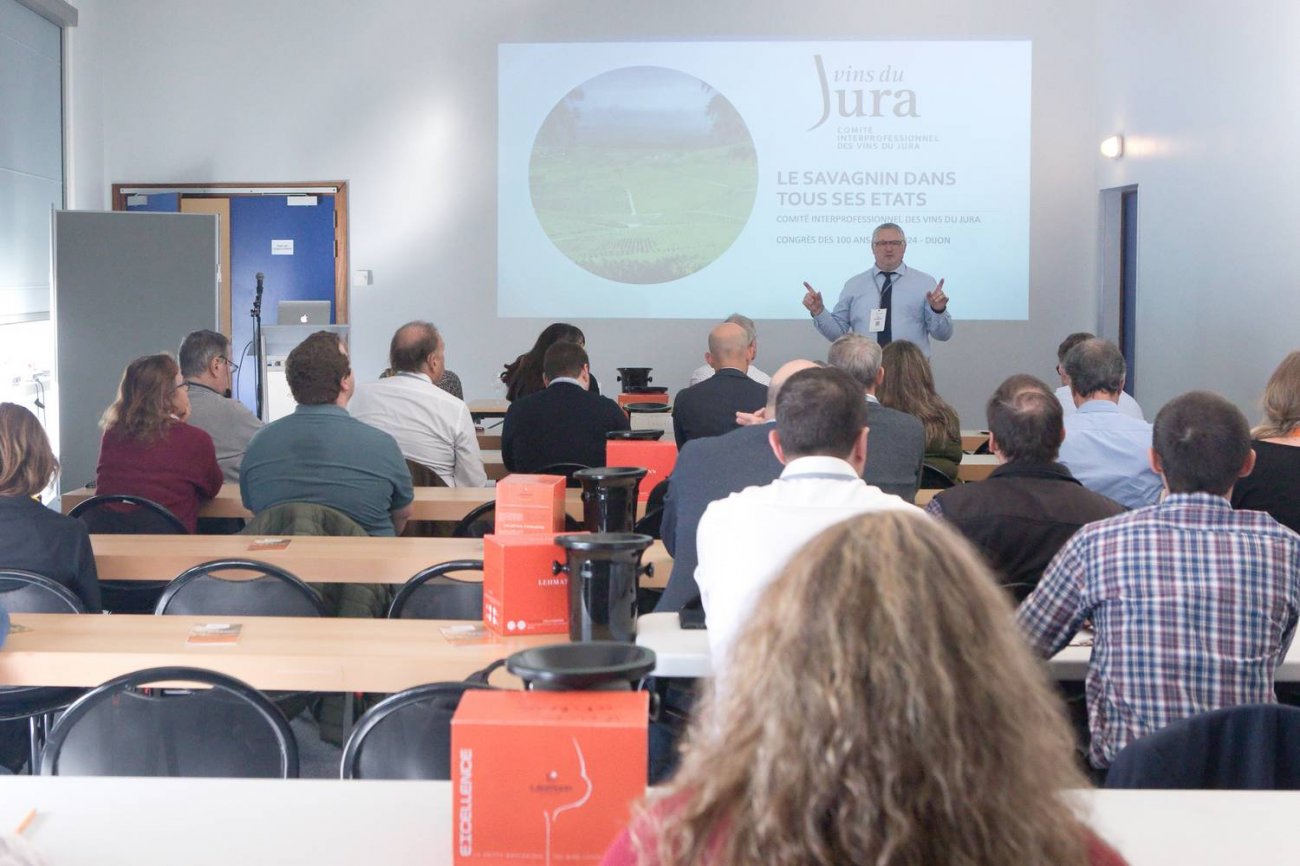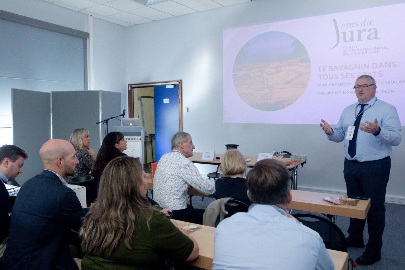 Parmi les nombreux ateliers prenant place dans les salles du palais des congrès de Dijon, l'interprofession des vins du Jura a proposé à des experts venus de plusieurs pays différents – dont l'Espagne et l'Argentine – une dégustation pour les sensibiliser aux vins issus du cépage savagnin.