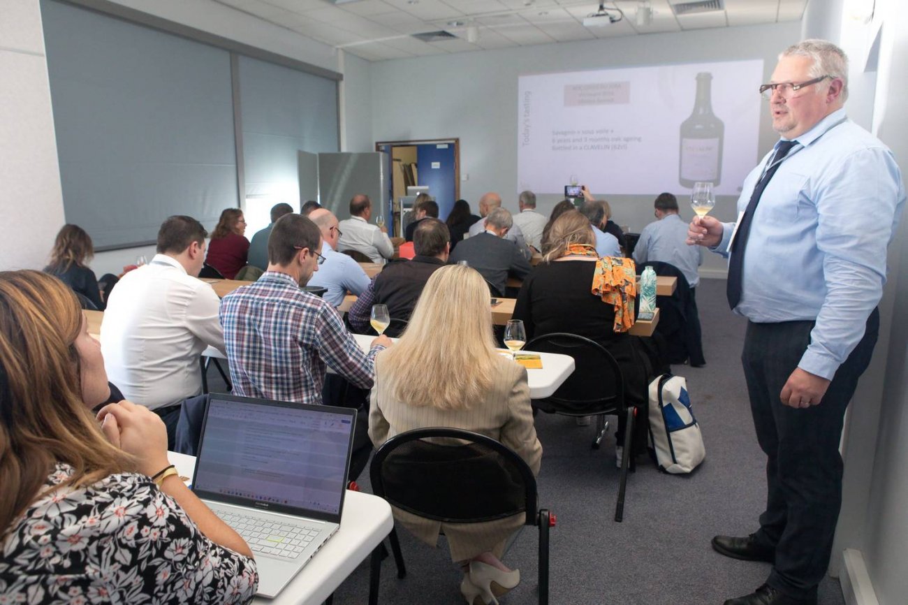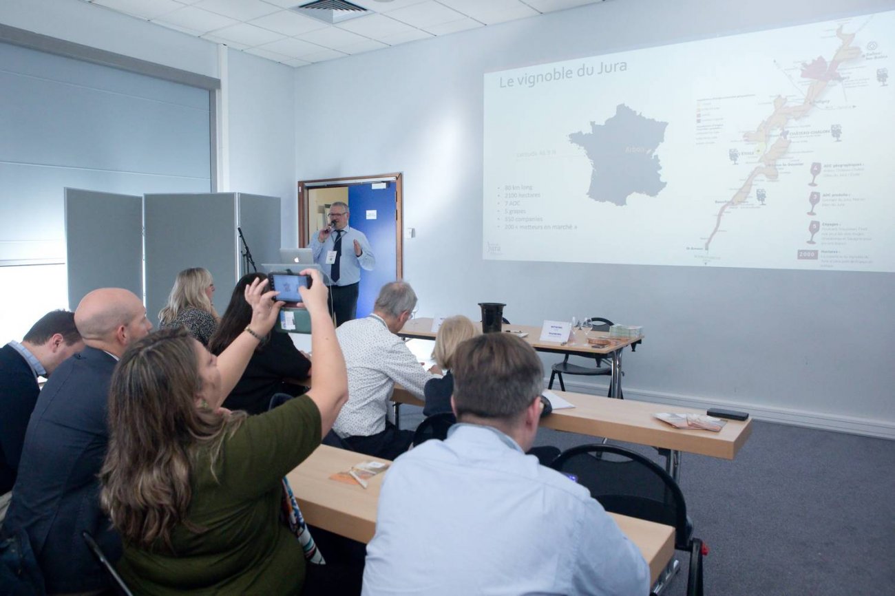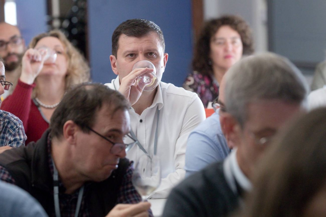 Parmi les nombreux ateliers prenant place dans les salles du palais des congrès de Dijon, l'interprofession des vins du Jura a proposé à des experts venus de plusieurs pays différents – dont l'Espagne et l'Argentine – une dégustation pour les sensibiliser aux vins issus du cépage savagnin.
