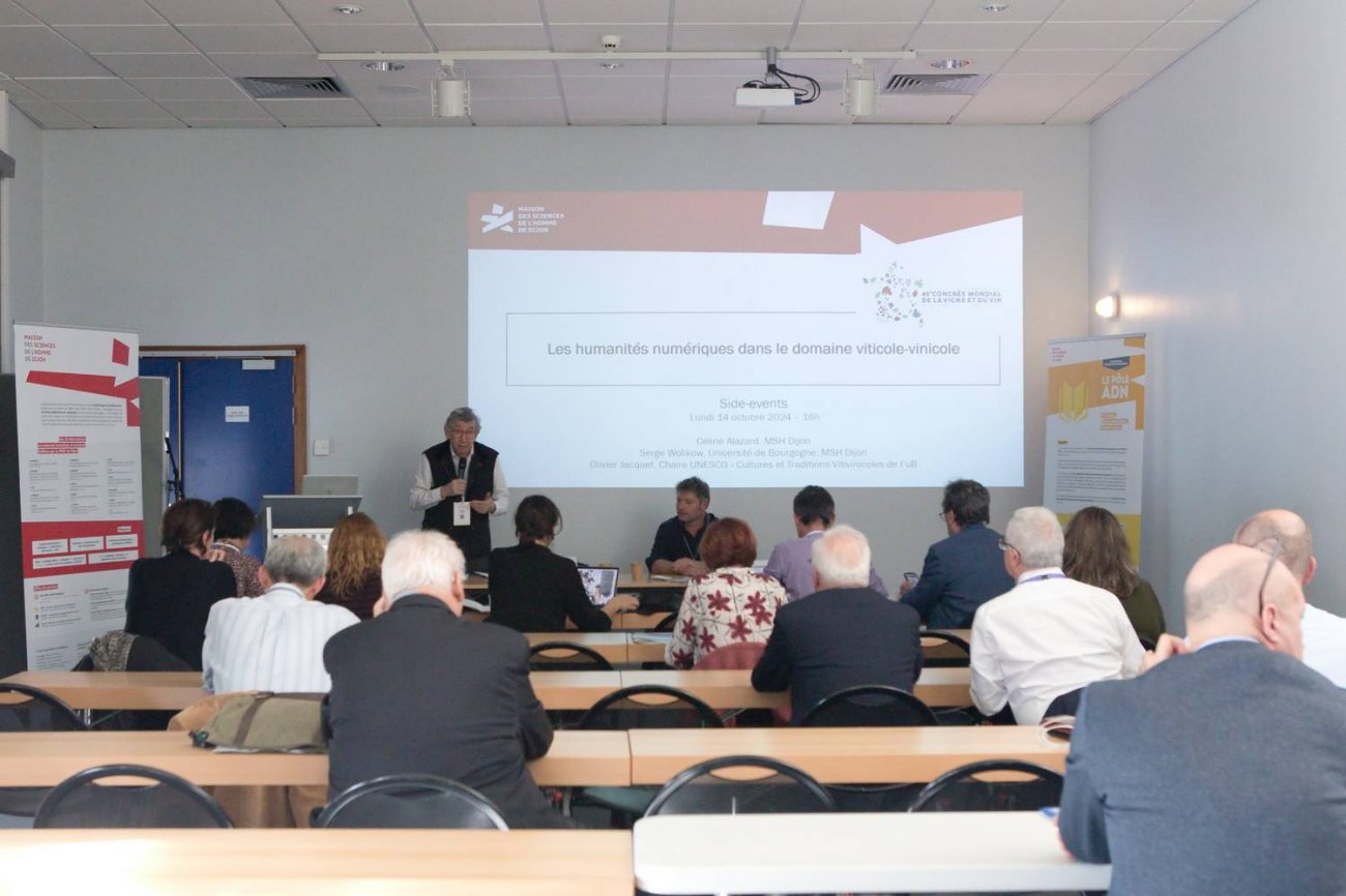 Dans la même salle, les membres de la chaire UNESCO «Cultures et Traditions viti-vinicoles» de l'université de Bourgogne ont ensuite proposé une conférence en français sur le thème «Les humanités numériques dans le domaine viticole-vinicole».