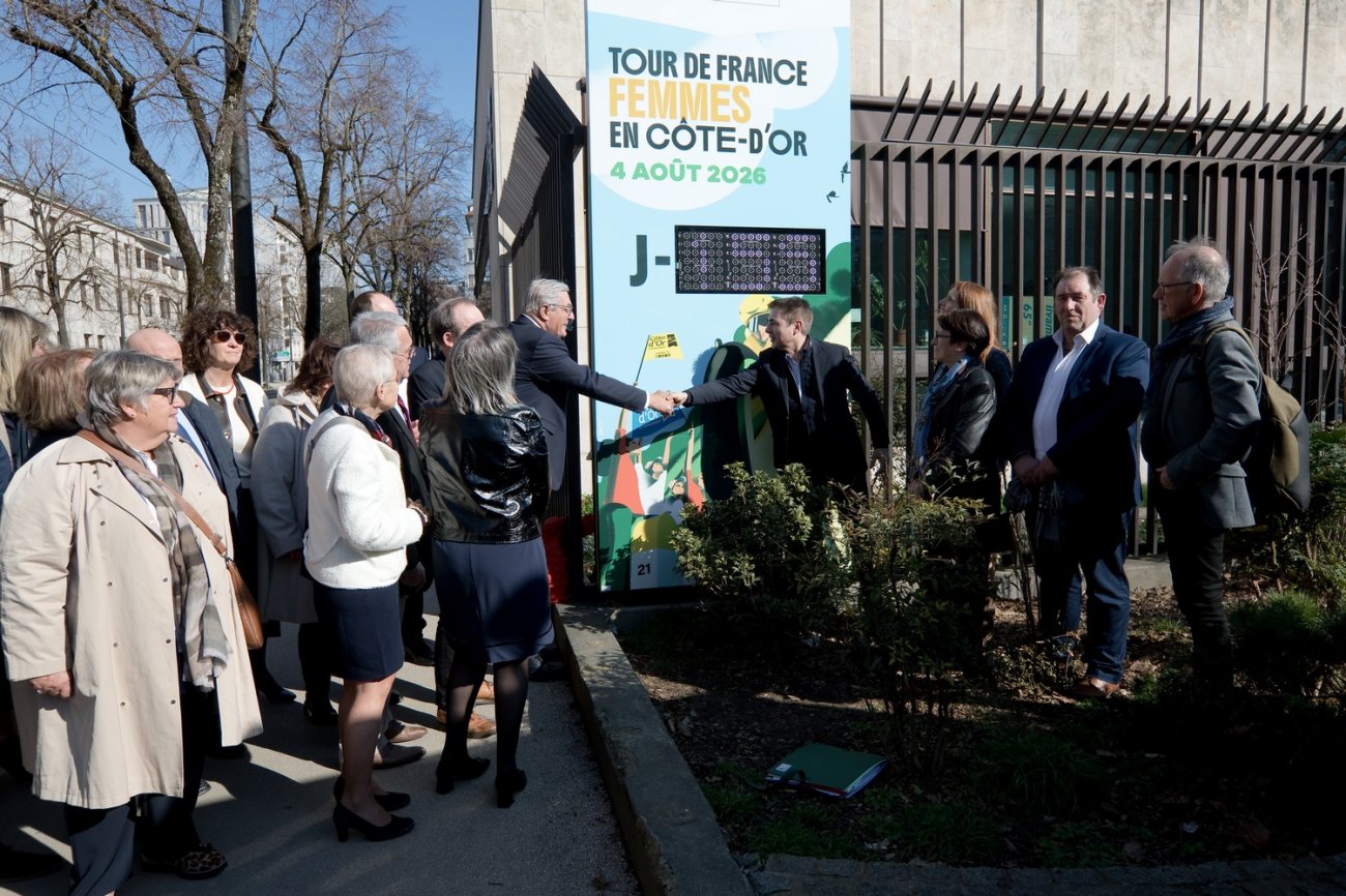 Ce lundi 2 mars 2026, François Sauvadet (UDI), président du Département de la Côte-d'Or, a dévoilé le panneau de compte à rebours apposé sur les grilles entourant un bâtiment de la collectivité, au centre-ville de Dijon.