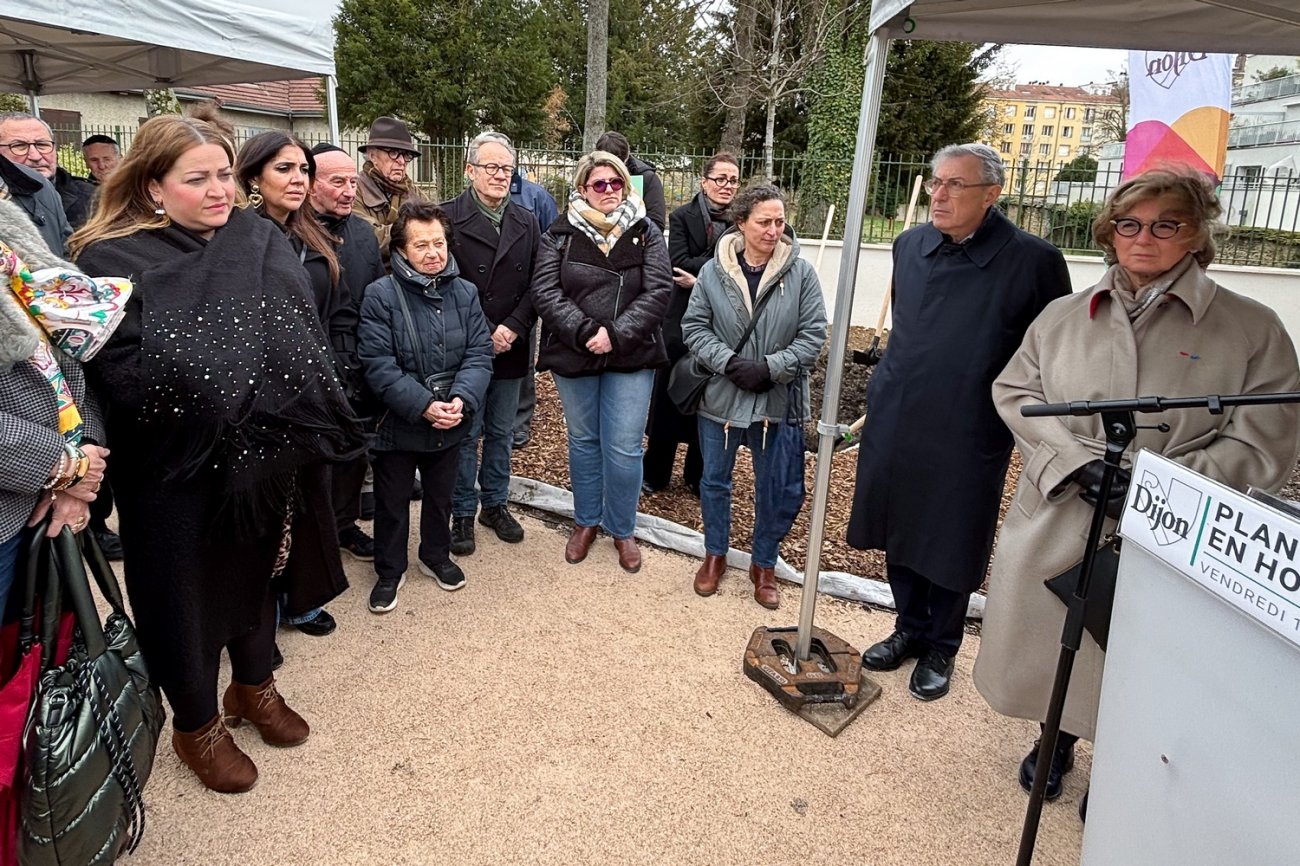 La maire Nathalie Koenders avait donné rendez-vous dans le tout nouveau jardin public Mirande, aménagé récemment le long de la rue du même nom, dans le quartier Université. Dans ce nouvel espace vert, la cérémonie a rassemblé environ 80 personnes, dont de nombreux élus locaux, des représentants des cultes notamment des membres de la communauté juive de Bourgogne-Franche-Comté.