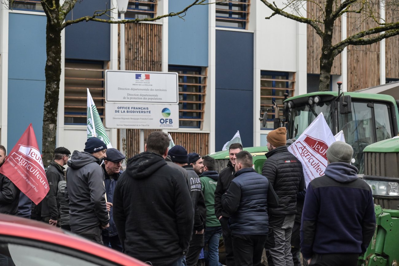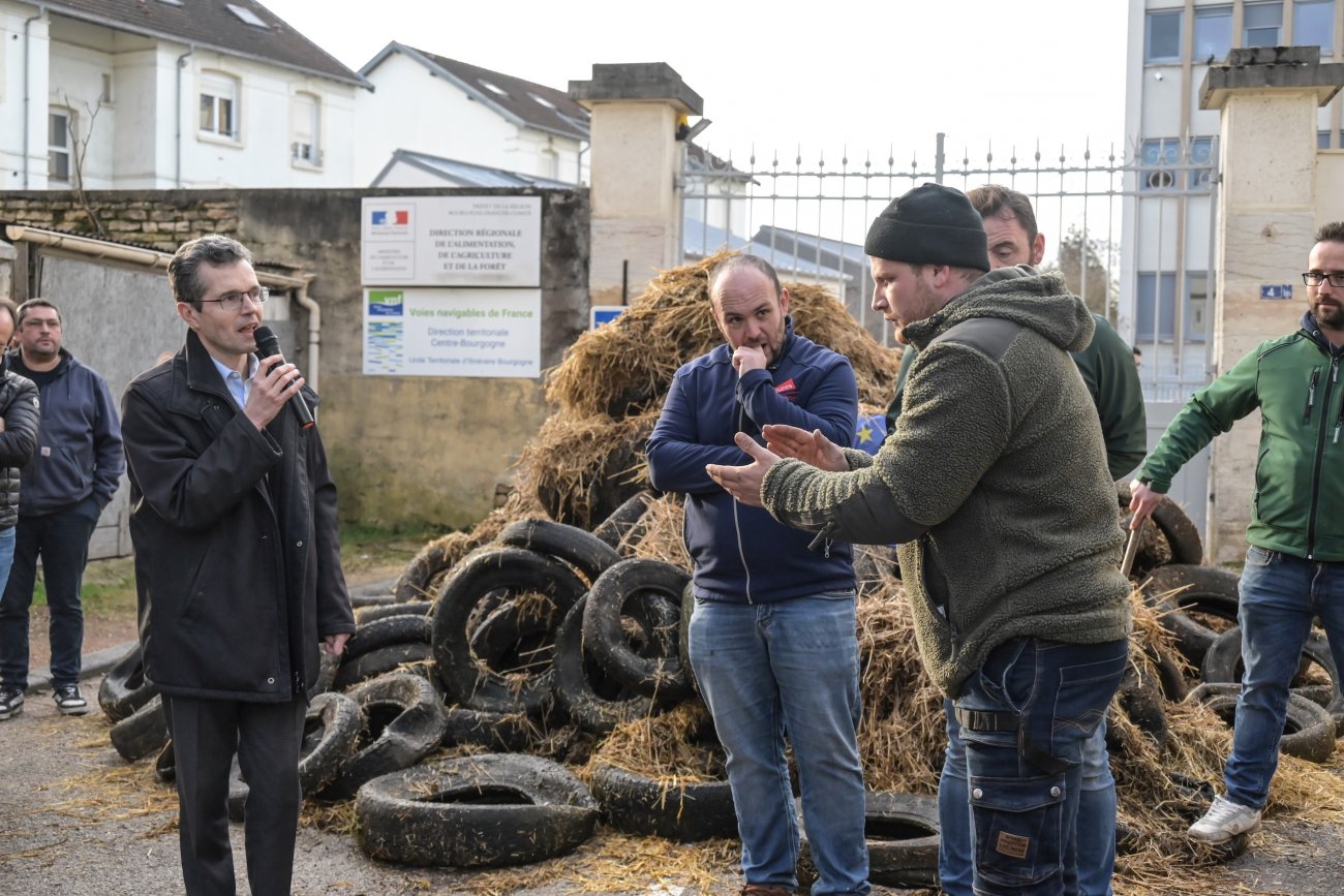 Lors de la mobilisation, les Jeunes Agriculteurs ont également interpellé le directeur de la DREAL Bourgogne-Franche-Comté. Un échange franc et parfois tendu, porté notamment par Thomas Lemée, président des Jeunes Agriculteurs BFC, autour des zones vulnérables, de la directive nitrates et des normes environnementales.