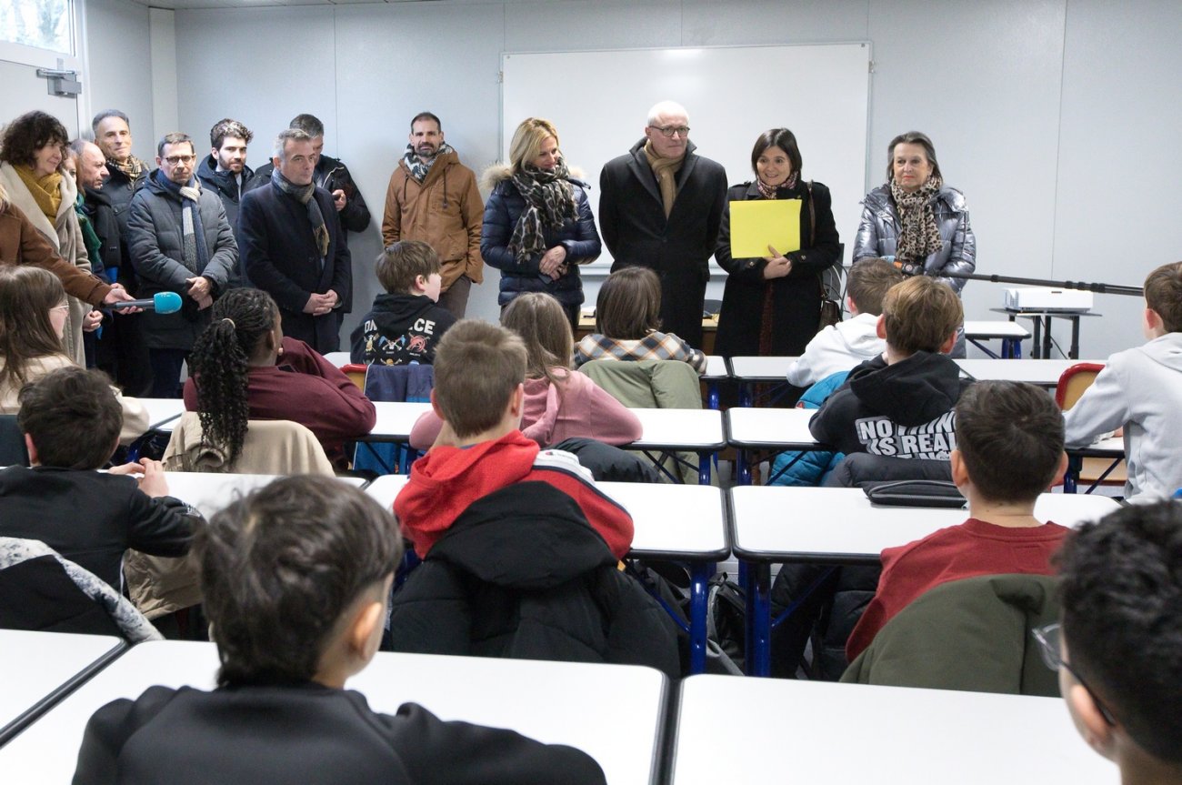Les représentants des pouvoirs publics ont également assisté à la reprise d'une classe de sixième avec son professeur principal dans un des bâtiments modulaire.