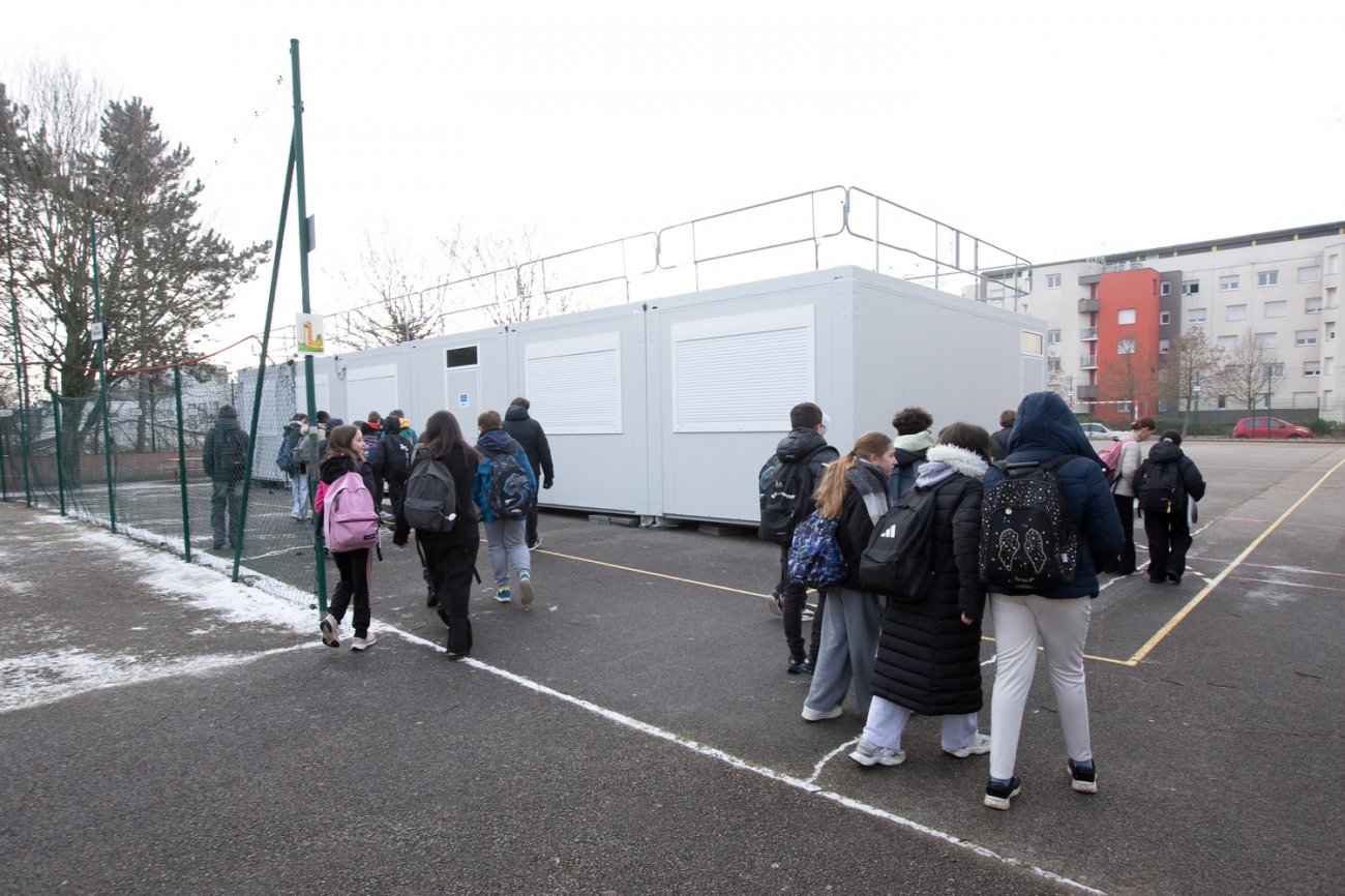 La rentrée a été marquée par trois aspects principaux : l'utilisation du bâtiment resté intact, l'installation de structures modulaires dans la cour pour les 42 élèves de 6ème et l'accueil au lycée Gustave Eiffel des 116 élèves de 3ème. En tout, le collège compte 491 élèves.