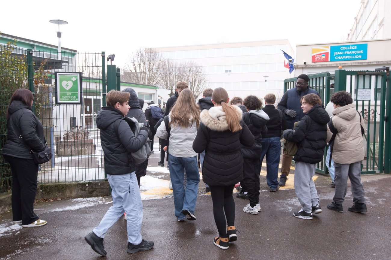 Les élèves du collège Jean-François Champollion ont effectué leur rentrée après les vacances scolaires de Noël, ce lundi 5 janvier 2026, à Dijon, dans le quartier des Grésilles. Dans la nuit du 12 au 13 décembre derniers, l'établissement a été ciblé par des incendiaires en «représailles» à la lutte de l’État contre le narcotrafic. Le sinistre a provoqué d'importants dégâts (