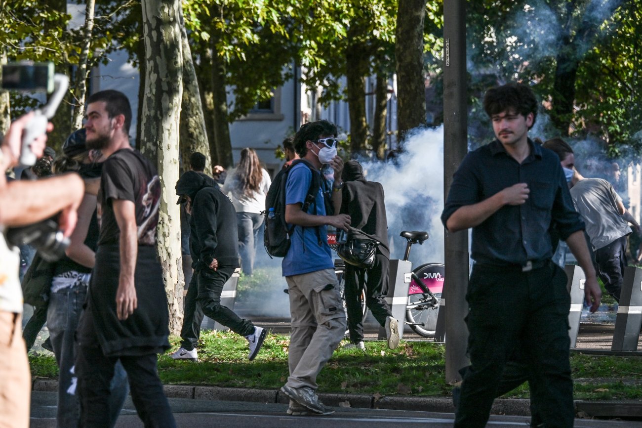 Le rassemblement s’est déroulé pacifiquement jusqu’à 16h30, avant quelques tensions. Si la très grande majorité des manifestants ont quitté la place Wilson une fois le cortège terminé, une centaine de manifestants sont restés, face aux CRS.