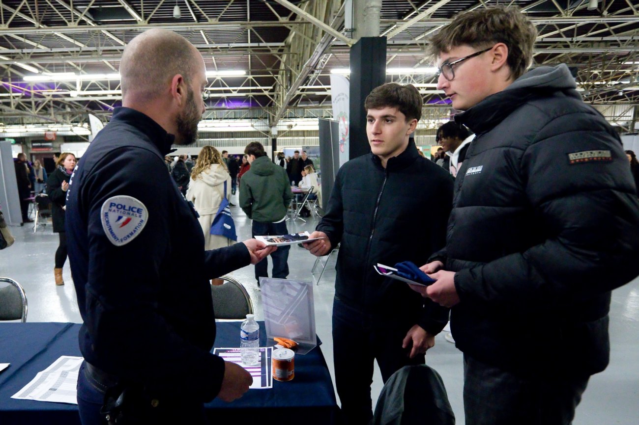speed datings, dès l'entrée, et des stands, eux-mêmes répartis par thème. D'un côté, les métiers de l'automobile, et de l'autre, les métiers des forces de sécurité et de la défense, ont connu un grand succès.