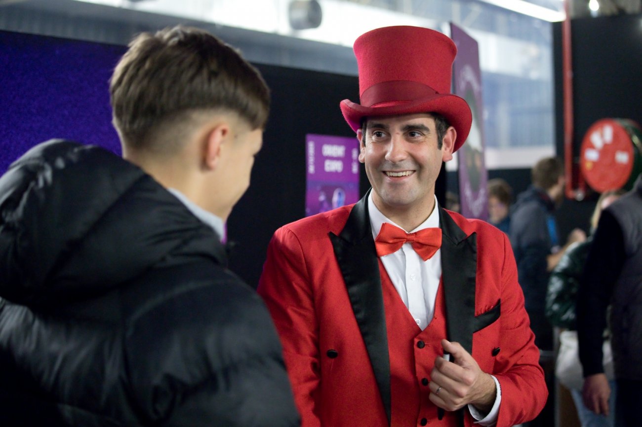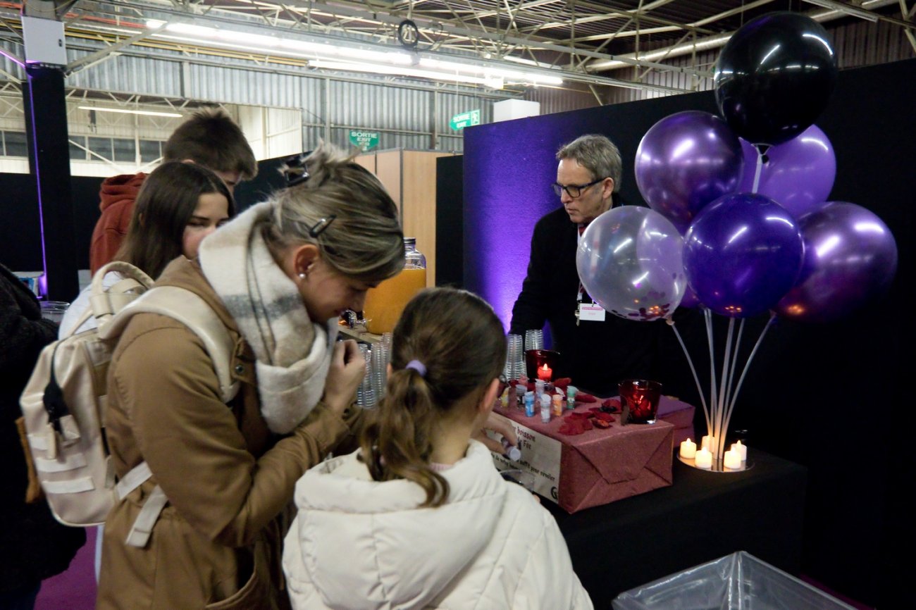 Le salon était placé sous le thème de la magie dans une ambiance noir et violet. Avec le sourire et des ballons, des salariées donnaient les premières indications et remettaient une carte magique à valider à la sortie. Des jus de fruits et des barbes à papa étaient proposés au fond de l'espace tandis que le magicien Nicoco allait à la rencontre des visiteurs avec quelques tours dont il a le secret.