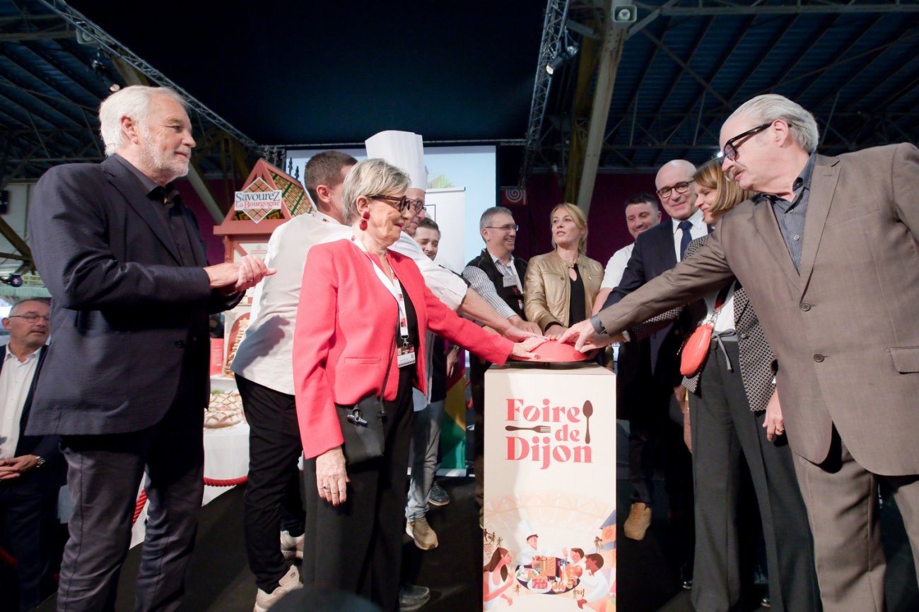 La maire de Dijon était accompagnée notamment de Paul Mourier, préfet de la Côte-d'Or, Océane Godard (PS), Catherine Hervieu (LE), Pierre Pribetich (PS), François Patriat (REN) – tous les quatre parlementaires de la Côte-d'Or –, Michel Neugnot (PS), vice-président de la Région Bourgogne-Franche-Comté, Marie-Claire Bonnet-Vallet (LCOP), vice-présidente du Département de la Côte-d'Or, François Rebsamen (FP), président de la Métropole de Dijon, Danielle Juban (REN), présidente de Dijon Bourgogne Events qui organise la Foire, Daniel Blanchard, président de l'Amicale des cuisiniers de la Côte-d'Or, Jean-Luc Theuret, président de l'Association du Bourgogne-Dijon, ainsi que de nombreux maires de l'agglomération.