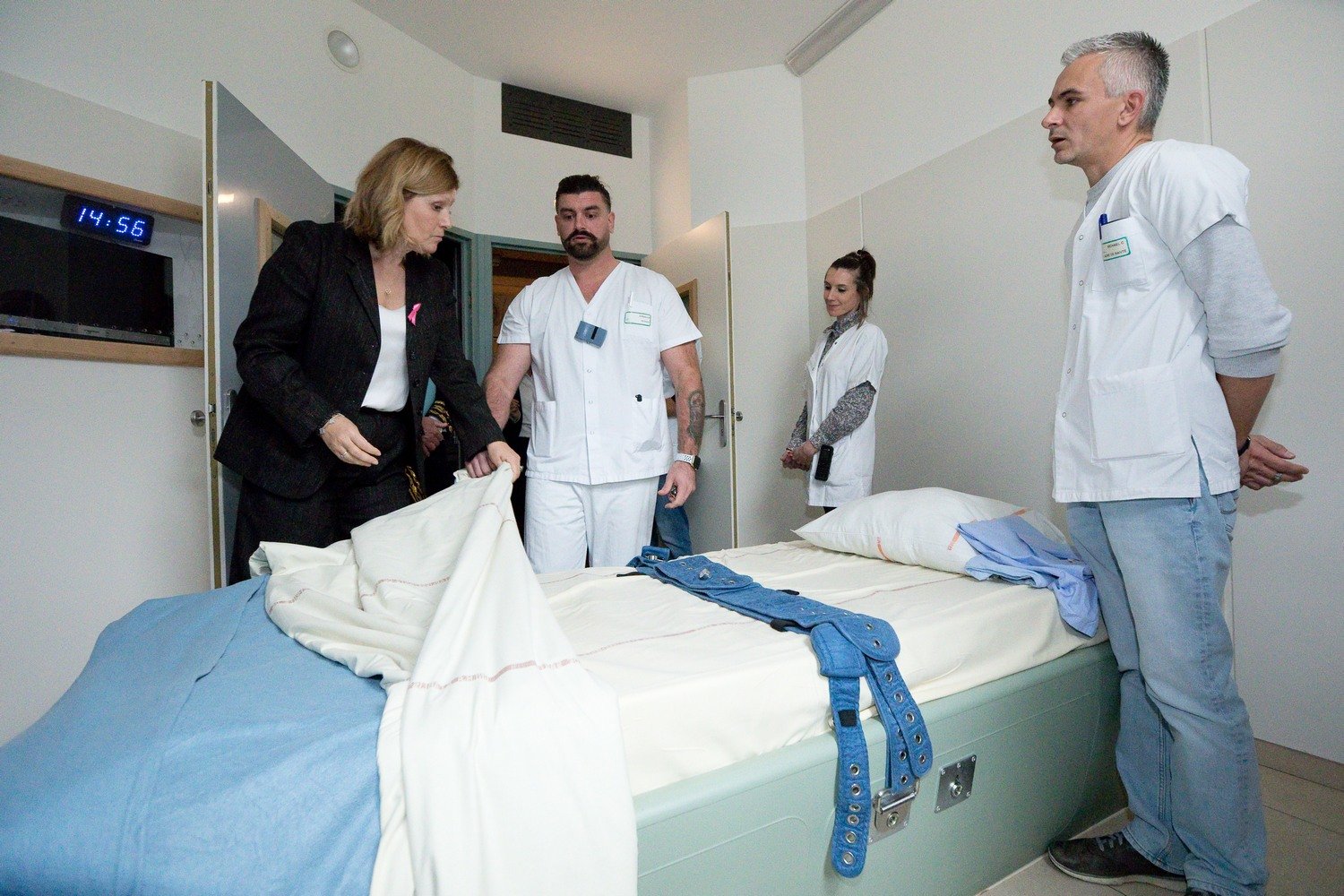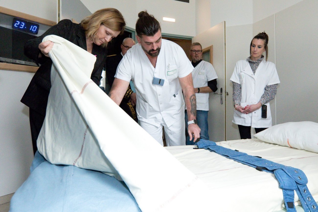 «Le centre hospitalier La Chartreuse est engagé depuis de nombreuses années à une réduction des pratiques coercitives», indique une cadre de santé alors que la présidente de l'Assemblée découvre une chambre de soins intensifs.