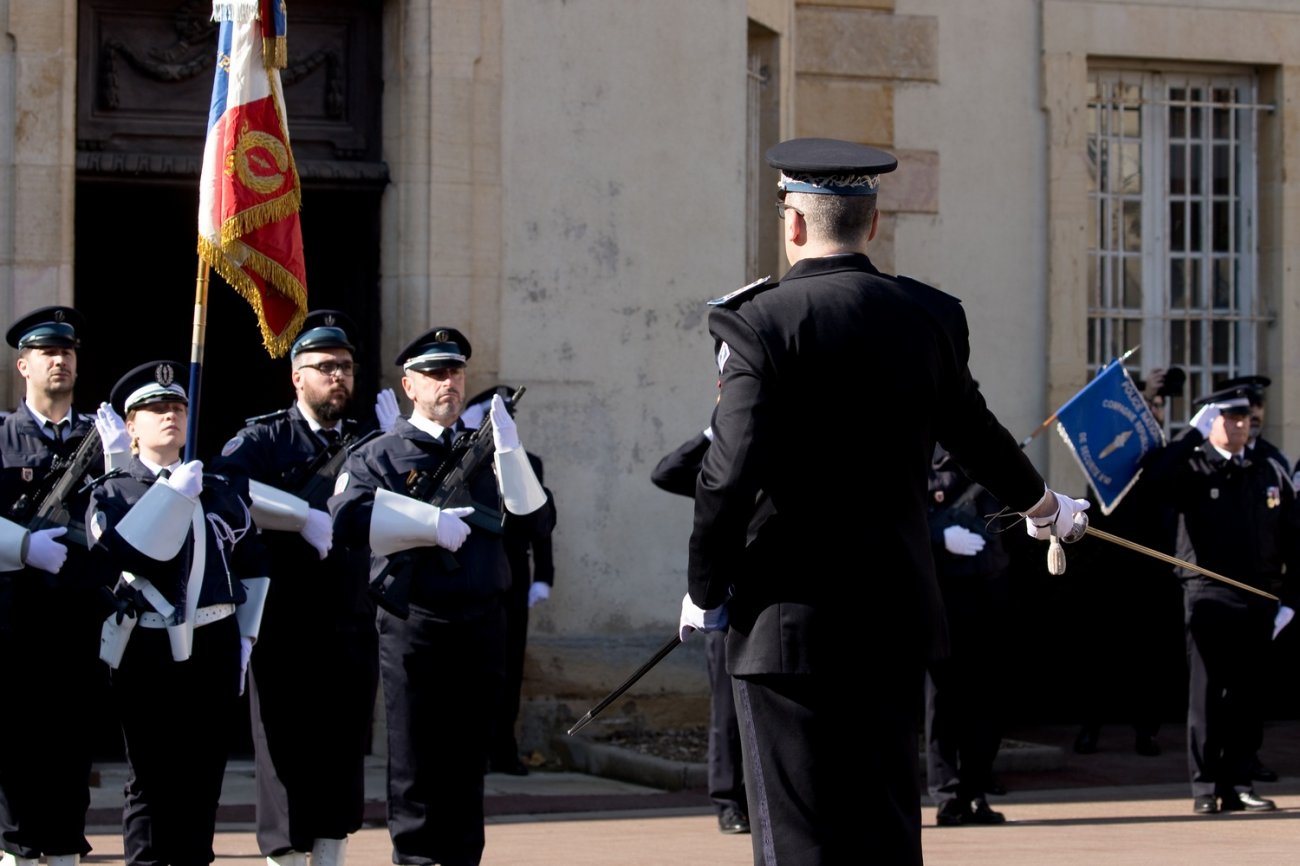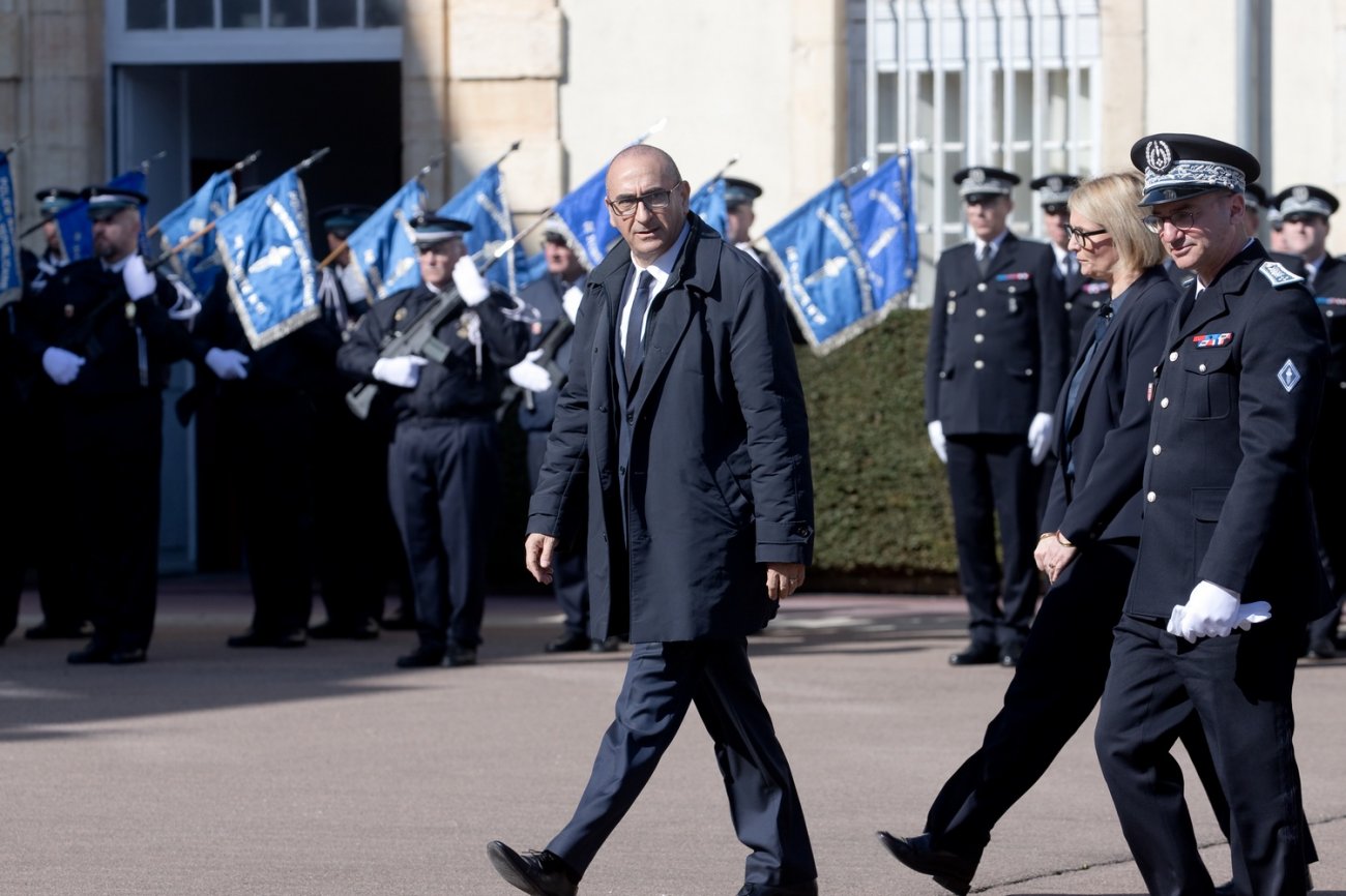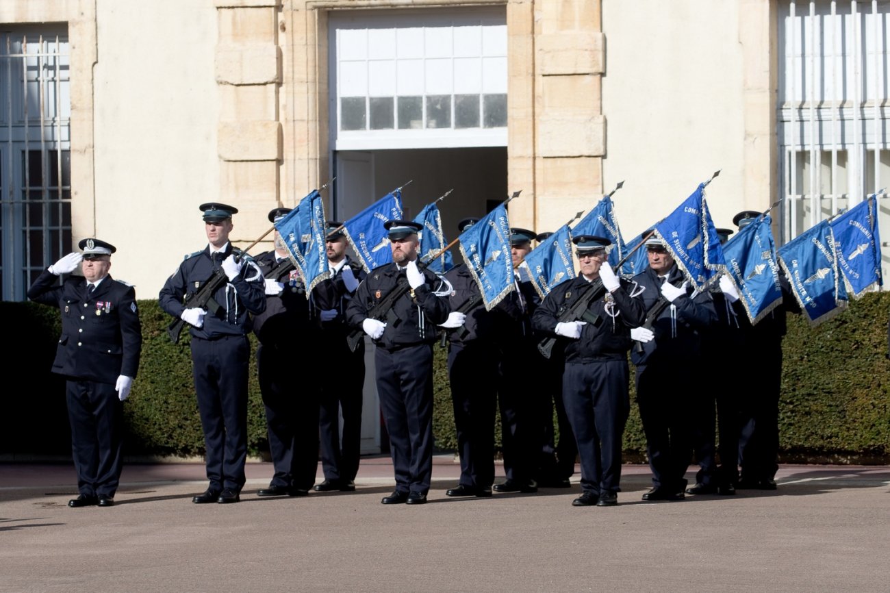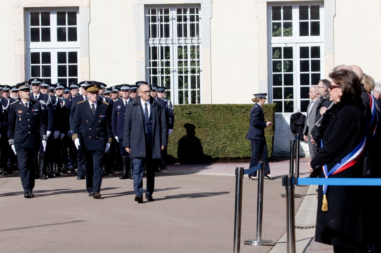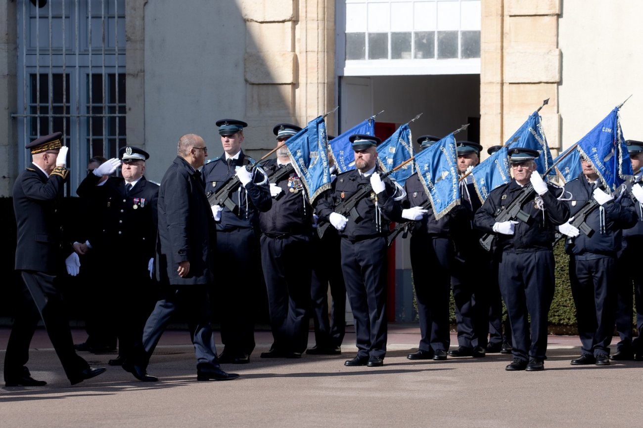 Dans le rang protocolaire se trouvaient également Marie-Pierre Vedrenne, ministre déléguée chargée de la Citoyenneté, Louis Laugier, directeur général de la Police nationale, Jean-Cyrille Reymond, directeur central des CRS, Nadège Marc, directrice zonale des CRS est, et le préfet de la Côte-d'Or Paul Mourier.