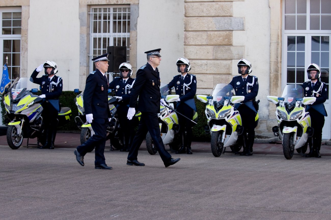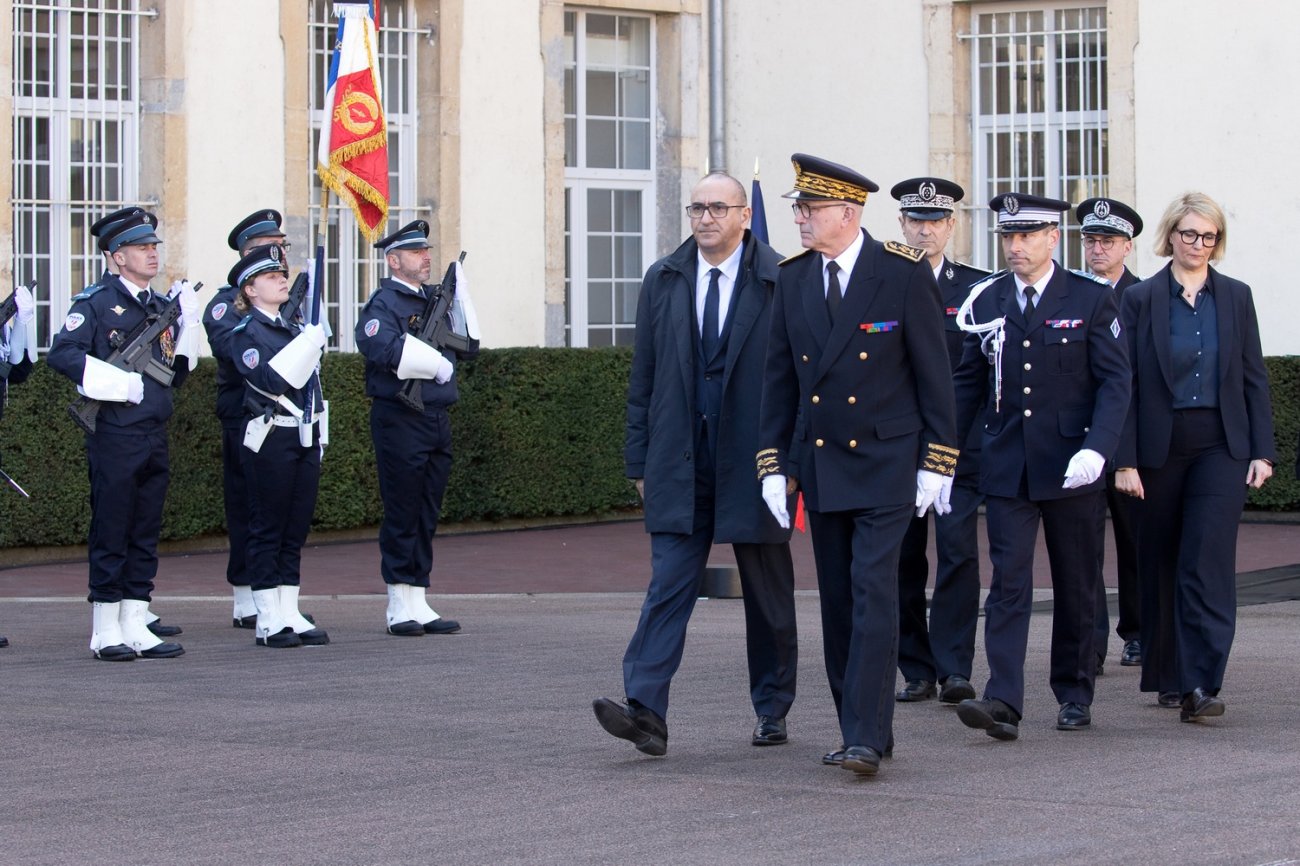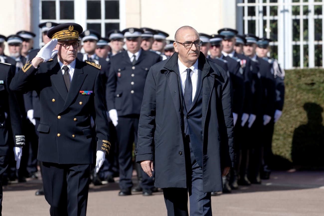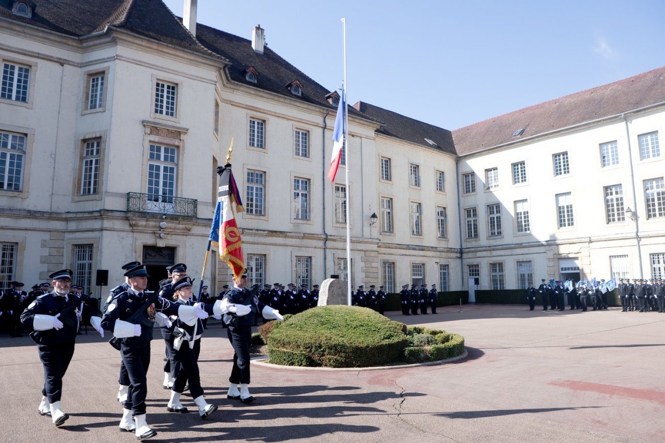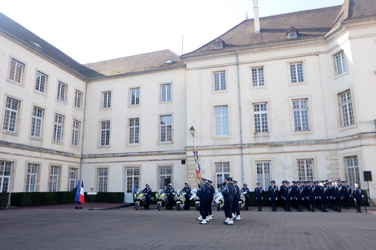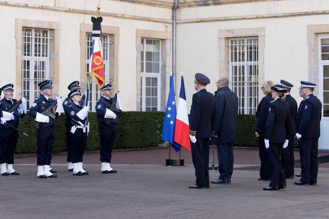Dans le rang protocolaire se trouvaient également Marie-Pierre Vedrenne, ministre déléguée chargée de la Citoyenneté, Louis Laugier, directeur général de la Police nationale, Jean-Cyrille Reymond, directeur central des CRS, Nadège Marc, directrice zonale des CRS est, et le préfet de la Côte-d'Or Paul Mourier.