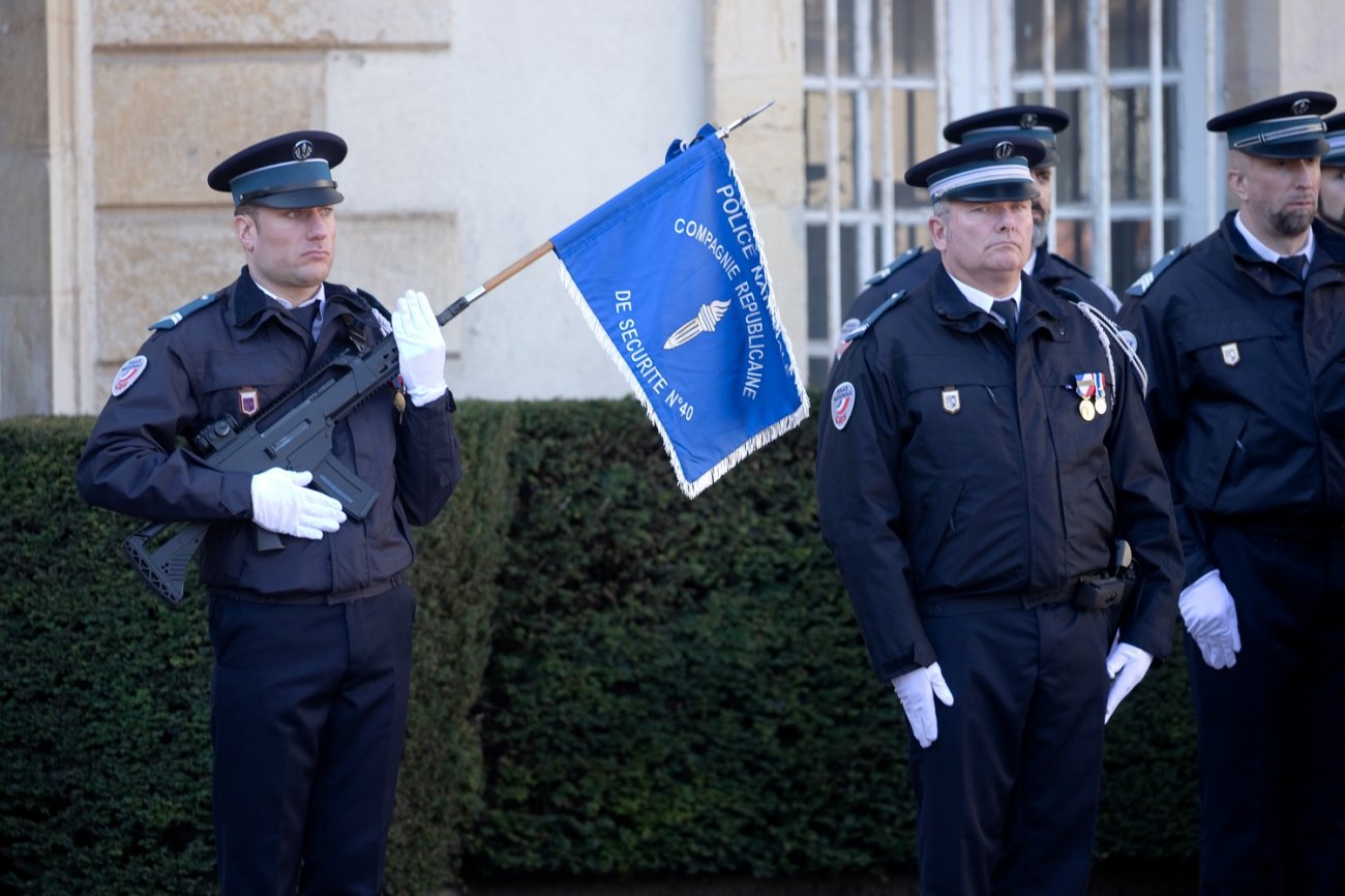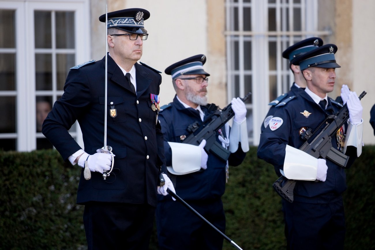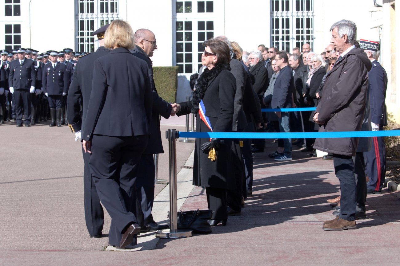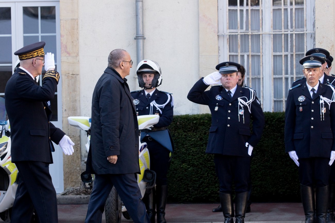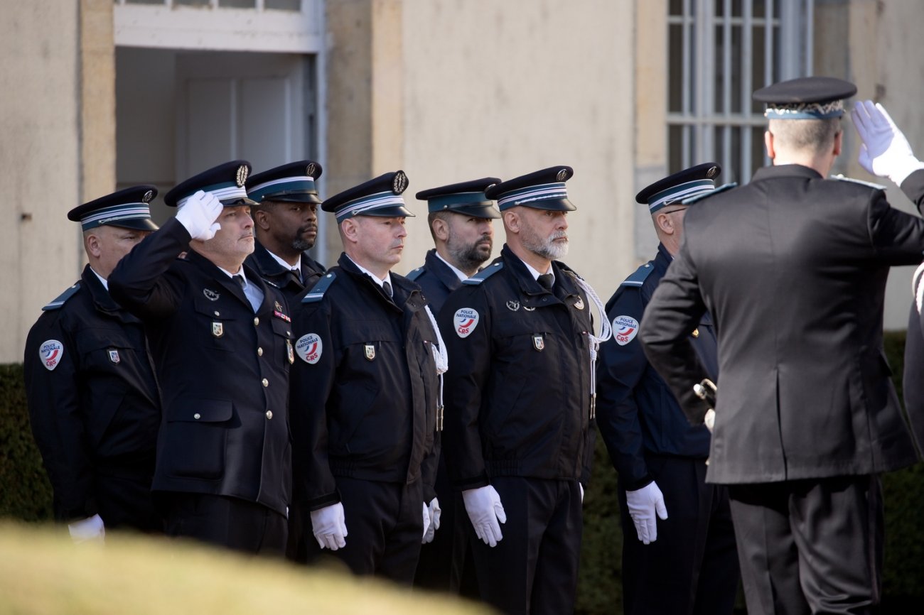 Dans le rang protocolaire se trouvaient également Marie-Pierre Vedrenne, ministre déléguée chargée de la Citoyenneté, Louis Laugier, directeur général de la Police nationale, Jean-Cyrille Reymond, directeur central des CRS, Nadège Marc, directrice zonale des CRS est, et le préfet de la Côte-d'Or Paul Mourier.