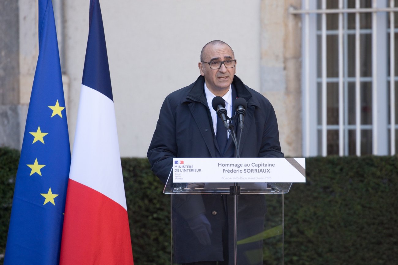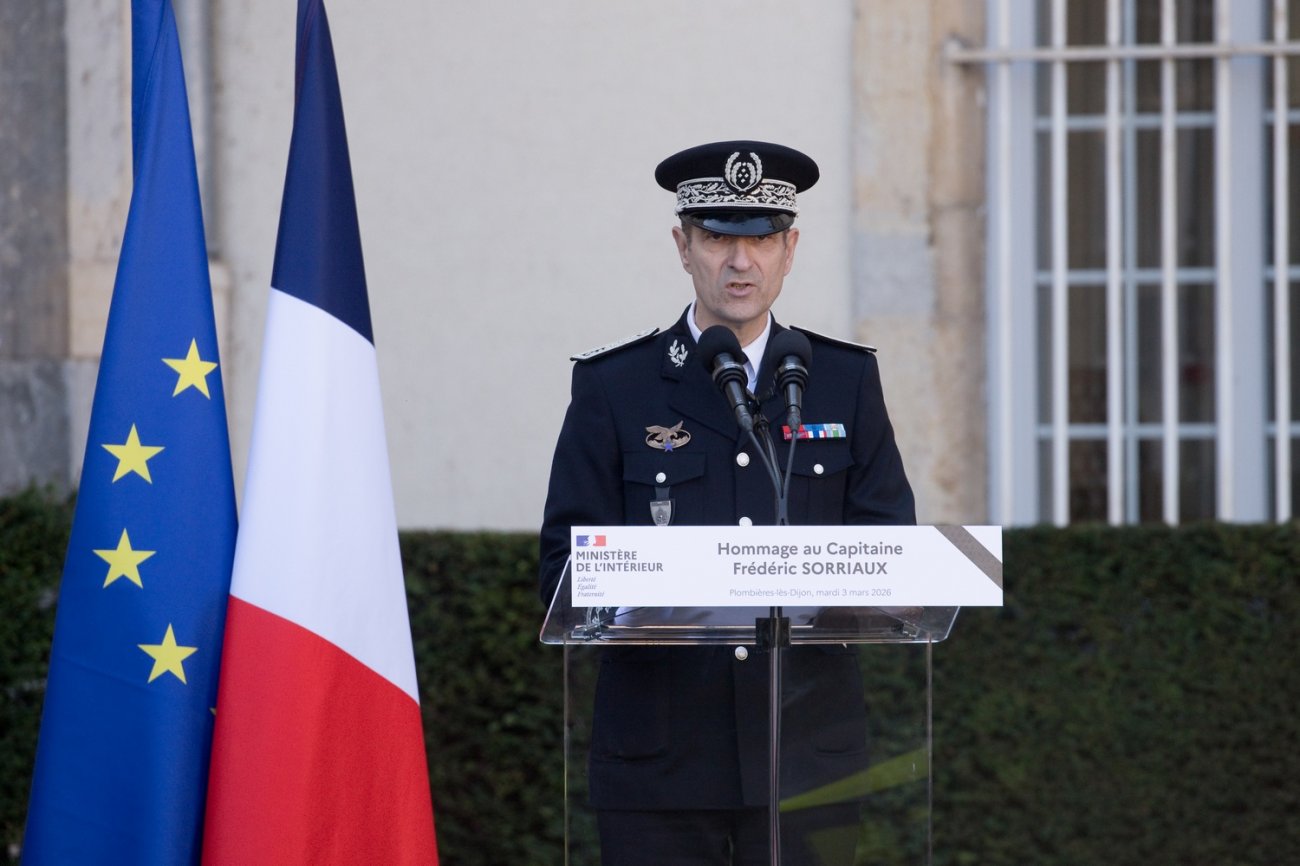Ce mardi 3 mars 2026, dans la cour d'honneur de la CRS 40, le ministre de l'Intérieur Laurent Nuñez a présidé l'hommage funèbre au policier promu capitaine à titre posthume. Plusieurs membres de la famille de Frédéric Sorriaux ont assisté à la cérémonie.