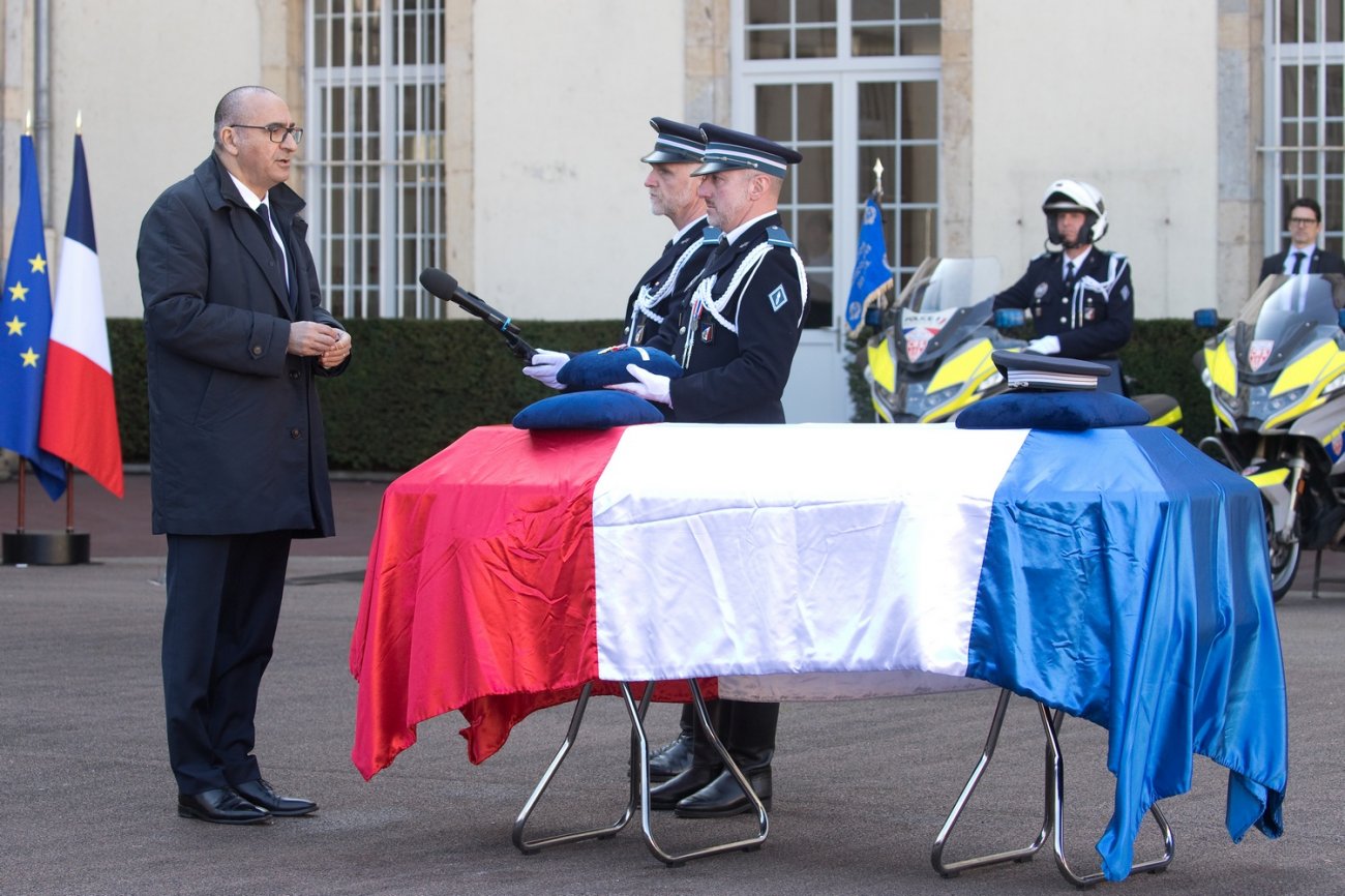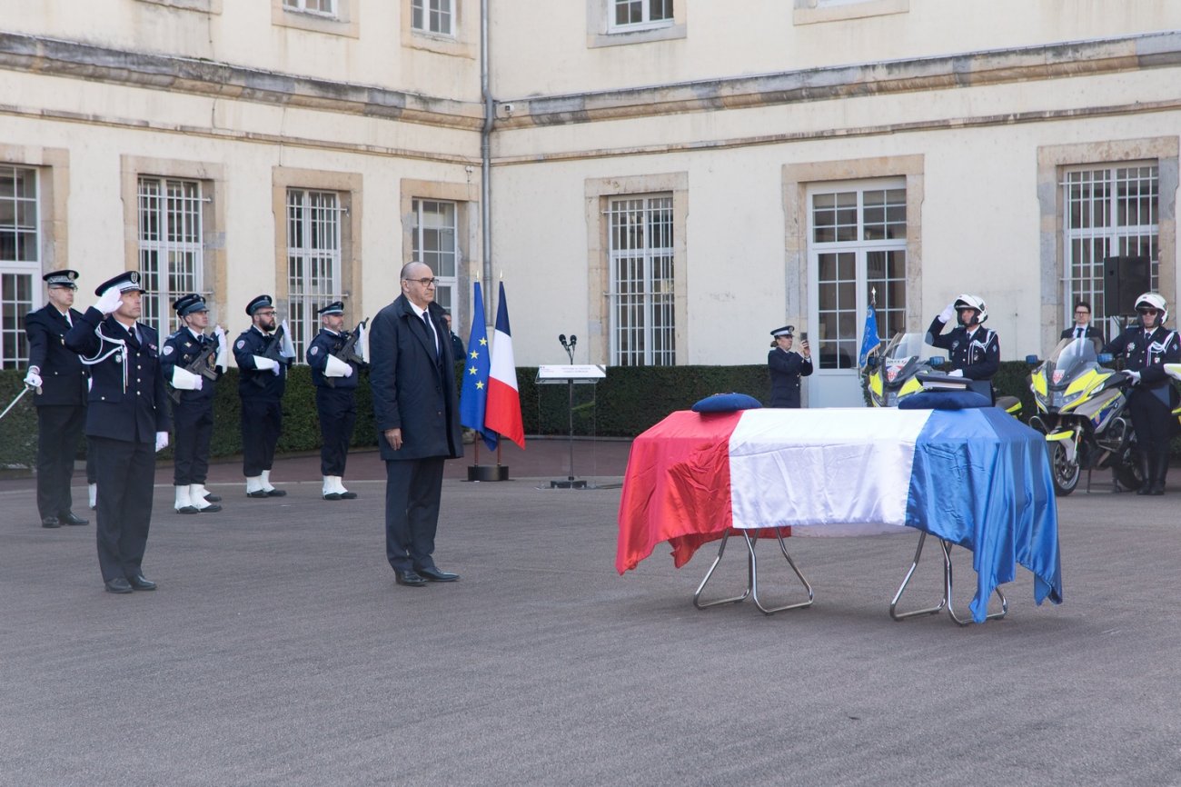 Ce mardi 3 mars, à Plombières-lès-Dijon, le ministre de l'Intérieur a salué «l'engagement d'une vie» et a rappelé que 200 policiers sont décédés en service en 20 ans. «Frédéric était un pilier du détachement», a confié son chef d'unité motocycliste.