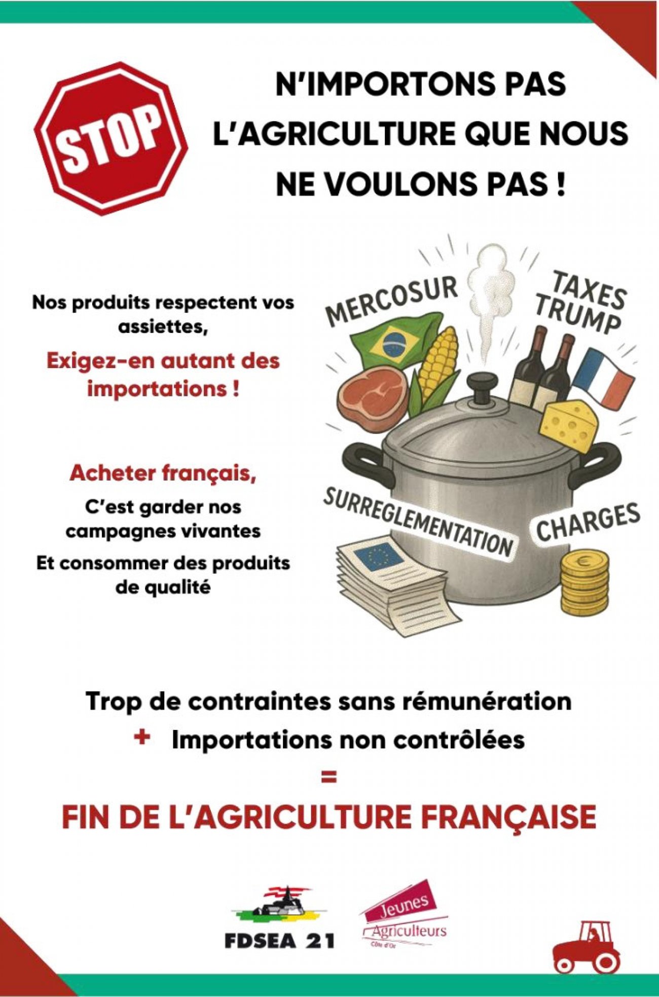 FDSEA et JA 21 appellent donc les agriculteurs de Côte d’Or à se mobiliser :